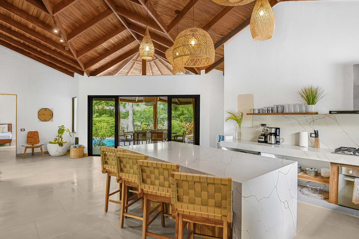 We are a family-owned boutique villa in the heart of Tamarindo, thoughtfully designed for your perfect vacation. Our tropical oasis blends Nordic-inspired modern design with a calm atmosphere. High ceilings, natural light & clean lines create an airy feel. Wood, concrete & white walls bring timeless elegance, and the gardens create a peaceful, natural setting. Your perfect Pura Vida experience!