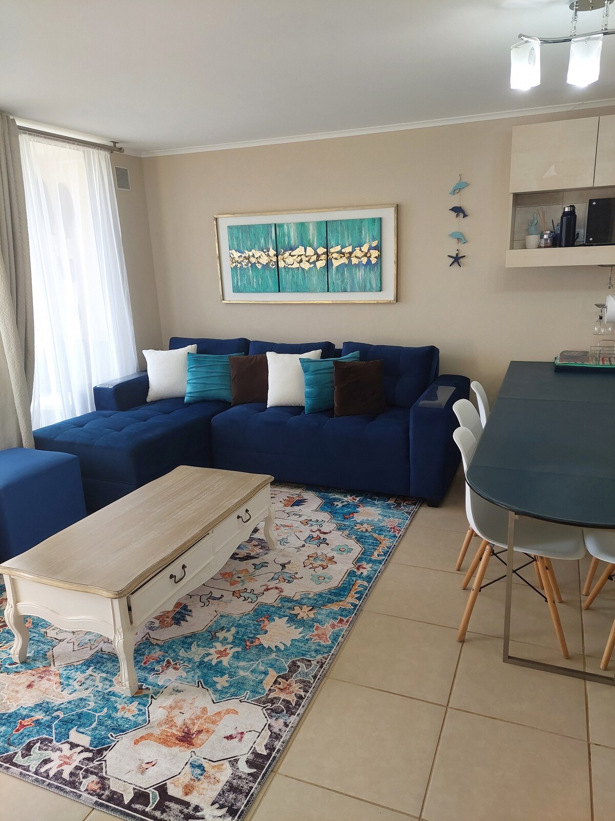 Hermoso departamento en condominio Laguna Bahía en un entorno seguro, Laguna navegable y playa artificial, 2 piscinas, parrilla, jacuzzi, Food Truck, canchas de tenis, gimnasio, varias canchas, cuenta con 10 hectáreas para hacer largas caminatas. Hermosa vista despejada al mar y al valle, estacionamiento propio y de visitas, wifi, 2 Smart TV, Netflix, Max, Zapping, full equipado, sólo debe llevar sábanas y toallas. Súper Anfitrión con más de 100 reseñas!!!