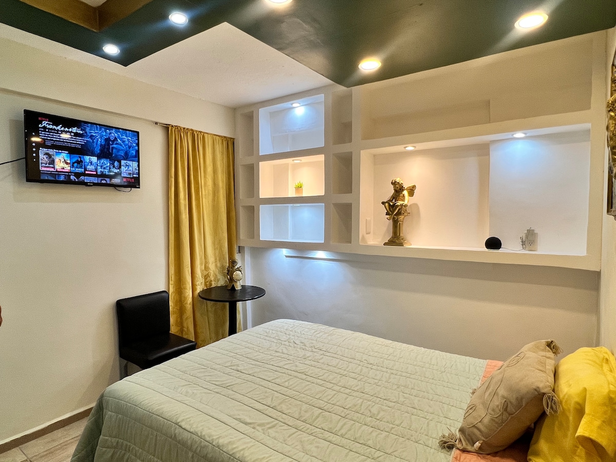 快適で心地よい滞在をお約束します! 快適さとスタイルを考え🌿た広々としたベッドルーム。 🧴清潔で整頓されています。 駐車🚘場 プライベート🌞 パティオで午後のコアツァの風をお楽しみください。 65インチテレビ✨エリア(プライムビデオ/マックス付き) 遊歩道から数ブロックの優れた住宅📍地。 含まれる💡追加サービス:コーヒー、Wi-Fi、エアコン、お湯、タオル、石鹸、シャンプー。