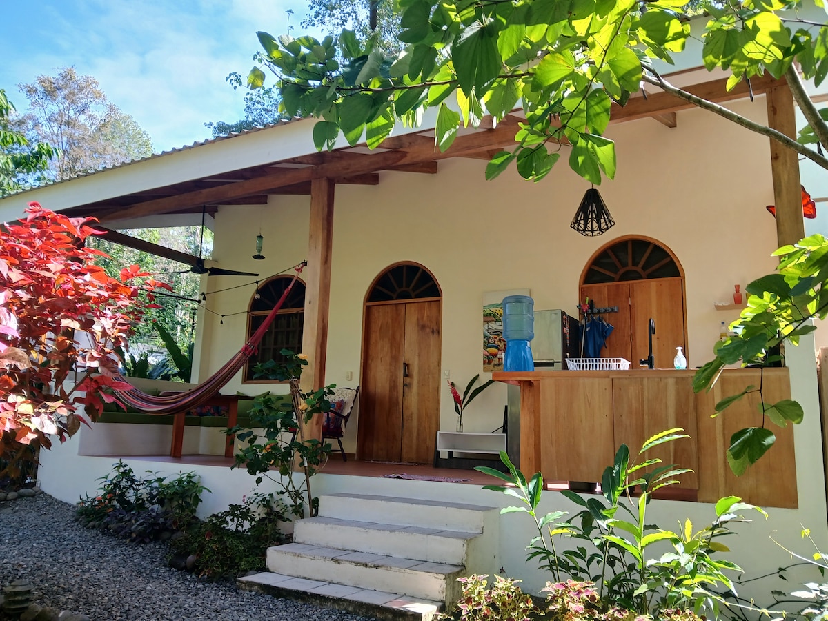 こちらは非常に硬い木で作られた原生林の木のキャビンです。 駐車場から徒歩約20 ~ 25分で家に着きます(体調の良い人なら約10分です: - )。 テラスからは、美しい海の景色の上からジャングルを眺めることができます。 マンサニージョ村まで徒歩圏内で、お店やレストランがあります。 敷地内には、ガンドカ・マンサニージョ野生生物保護区の中心部を通る小道があります。 照明、冷蔵庫、コンロ、Wi-Fi、浄水器があります。 必要に応じてブーツを提供します。
