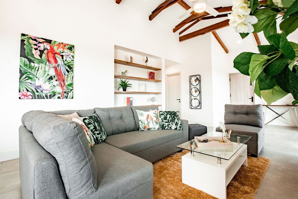 Enjoy the beach and relax in Villa-36! This stunning Villa is located in BlueVenao on the Azuero Peninsula, a unique beachfront community and tropical paradise with miles of beautiful beaches. Just a quick walk and you’ll be on the beach, ready for new adventures! Our charming and sunny Villa has 3 bed/3bath, two with a comfy Queen bed, and the third w/twin over full bunk bed. Living, Kitchen and Terrace — Fully equipped for your tropical getaway.
