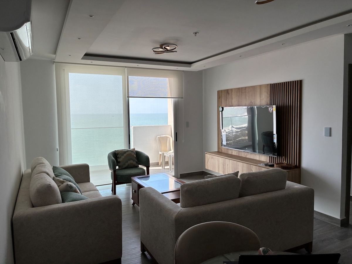 海に面した家庭的な空間をお楽しみください。 エレガントで広々とした場所で、海辺の10階にあり、8名様まで快適にお過ごしいただけます。家族で過ごす美しい日々、友人とのリラックス、カップルでの共有、または街の騒音から離れて星を眺めるのに最適です。🌟 24時間365日の警備とビーチでのセキュリティで常にあなたの健康を守ります。さらに、アクセスカード付きの機能的なエレベーターであなたのプライバシーを保護します。