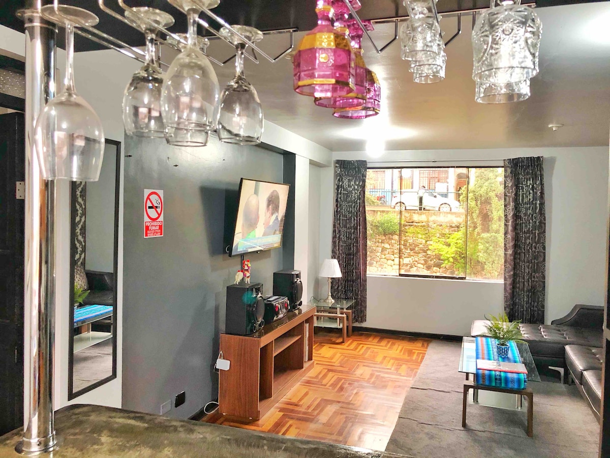 サンタ・モニカ地区(クスコの高級で静かで安全な住宅街)にある美しいアパート。広々としたスペースで快適な滞在ができ、現代的なデザインで、設備の整ったキッチンとWiFiを備えています。 クスコの歴史地区からタクシーで7分、レアルプラザモールから半ブロック、さまざまなレストラン、銀行、スーパーマーケット、診療所、病院、ショップがあります。 ビジネス旅行や家族旅行に最適な場所です。