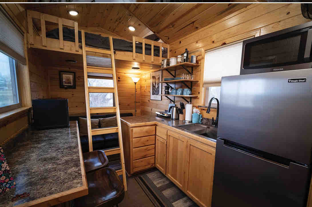 Welcome to the Four Corners Tiny House—a handcrafted basecamp just outside Cortez with big sky views. Inside is simple and functional. The kitchen has a sink, microwave, hot plate, and essentials. A loft bed with a new mattress and a futon for extra sleeping space. The bathroom has a full-size shower with on-demand hot water. Water pressure may be lighter at first but evens out and works ok. Step outside to your private deck, fire pit, and Adirondack chairs,perfect for coffee, fires, and views.