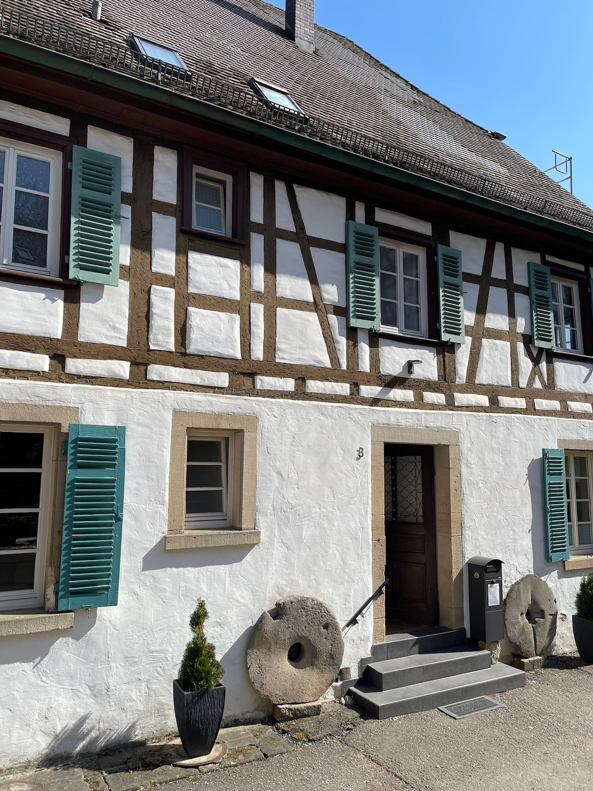 歴史的な木組みの家にある約45平方メートルの中央の明るいアパートメントは、休暇、見本市、出張に最適です。レストラン、ビアガーデン、パン屋、肉屋、スーパーは数歩の距離にあります。アイルスワーセン湖とヤコブスウェグは家のすぐそばにあります。シュトゥットガルトの見本市と空港、メッツィンゲンのアウトレットシティへのアクセスも便利です。カップル、ハイカー、家族連れ、出張者に最適です。