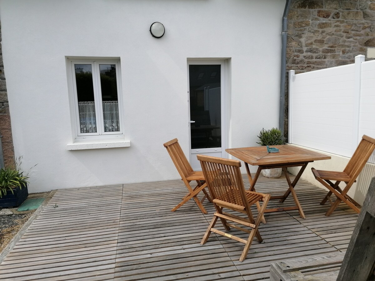 ///2つ星の家具付き観光施設🌏🌷/// 私たちの宿泊施設は、カラフルで機能的な小さな2階建てで、滞在をお楽しみいただけます。住宅地にある私たちの家に隣接していますが、その構成により完全に独立しています。 シーツ、掛け布団、タオルが用意されています。 ベグ・ルゲールビーチから4.5 km、街から3.5 km、ローズ・グラナイト・コーストから約10 kmの場所にあります。
