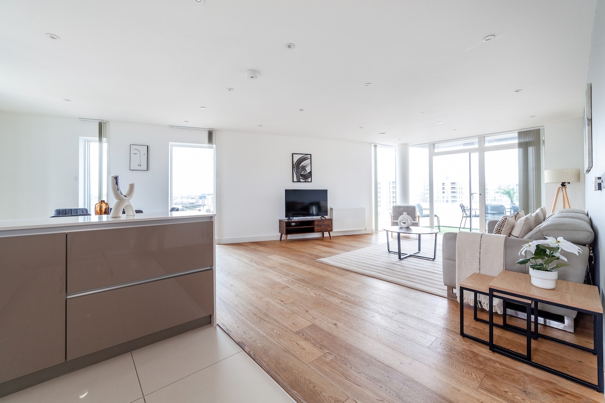 • 5名様用の豪華なリバーサイドアパートメント • 新築の開発地に位置 • 全室に高品質の家具と備品 • ダブルベッドルーム2室、バスルーム2室、ソファ、折りたたみ式の高品質シングルベッド • テムズ川の景色を望むバルコニー • オープンプランのリビングルーム、キッチン、ダイニングエリア • ダイニングテーブル • 独立したワークデスク • 近くに大きな公園 • ロンドンの休暇や出張に最適 • ロンドン地下鉄(新エリザベス線)、DLR、鉄道へのアクセスが便利 •
