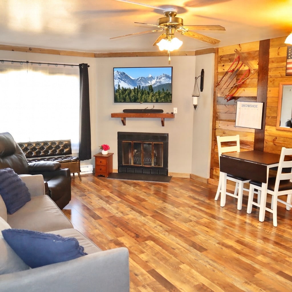 スノーシューで最高のロケーションにある新しく改装されたマウンテンロッジ(2025年現在)、ボールフーターリフトまでわずか数歩! モダンなインテリア、新しいデッキ、堅木の床、改装されたオープンキッチンとリビングルーム。リフト、村、斜面の景色! コンドミニアム内のスキーとブーツの収納 コーヒーとココアが含まれています! 定員4名、クイーンと引き出し式ソファ スキーレンタルが15%オフ 無料駐車場 DISH 新しいスマートテレビ アップグレードされたWi-Fi 夏はLRのエアコン ゲーム 新しいジム クラシックな任天堂