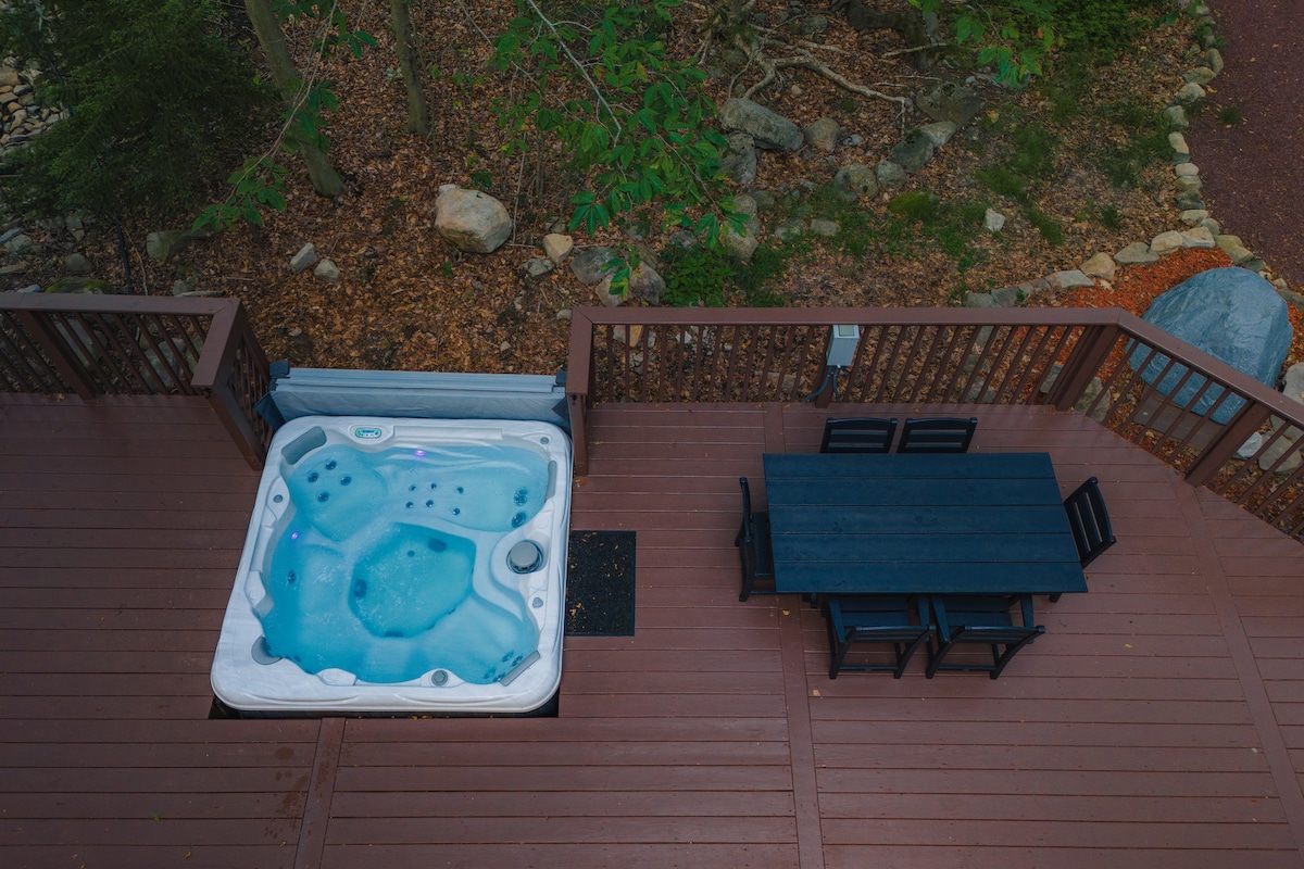 ポコノ山脈で楽しもう。美しく居心地のよい宿泊施設には、一年中ご利用いただけるホットタブがあり、お入りになってリラックスしていただけます!キッチンには備品が完全に揃っており、快適なクイーンサイズベッドには清潔なリネンが用意されています。ハイキング、四輪バギー、乗馬、スカイトップ・アドベンチャー・センターから3分でジップライン、ツリートップ・クライム、ペイントボール、アロウタグにアクセスできます。地元のレストラン数軒で素晴らしい料理とドリンクをお楽しみいただけます。また、カジノ、キャメルバック、カラハリも近くにあります。 連泊の場合は割引を適用 高速Wi-Fiと「変換可能な」ワークスペース