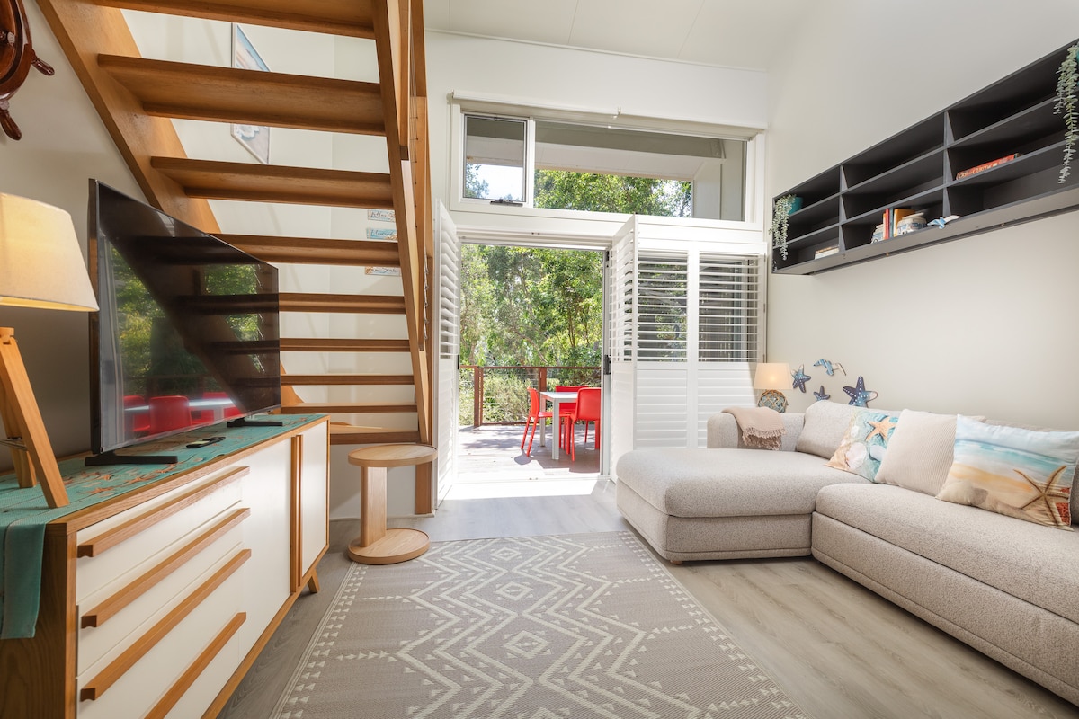 サンリットサンズは、ポイントルックアウトのアリュールリゾートの一部であるモダンな1ベッドルームの小屋です。この自炊式ユニットはリゾート施設とカフェの近くにあります。クイーンベッドを備えたロフトスタイルの寝室で、4名様がご宿泊いただけます。階下にはリビングエリア、簡易キッチン、コアラシェーズ/デイベッド/クイーンソファベッドのコンボ、バスルーム、食器棚、ランドリーがあります。外には、ウェーバーのバーベキューと屋外設備を備えた広いデッキがあります。ホームビーチ、ボウルズクラブ、ストラドブロークアイランドビーチホテル、地元の市場のすぐ向かい側にあります。