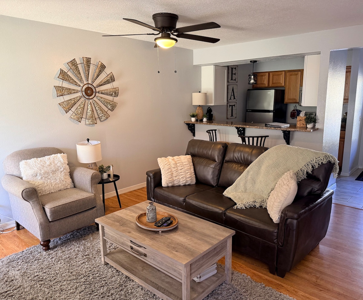 最大6名様まで宿泊可能な美しく装飾された2ベッドルーム、2バスルームのコンドミニアムで快適にお過ごしください。キングベッド2台、ソファベッド1台、ベビーベッド1台、各寝室とリビングルームに大型薄型テレビが備わっています。暖炉のそばにある快適なリクライニングチェアで映画を楽しみながらくつろぎましょう。キッチンにはステンレス製の家電と十分な座席が備わっており、裏のポーチには電気バーベキューグリルもあります。徒歩圏内には年中営業のアメニティがあり、自宅のようにくつろげる完璧な宿泊先です。