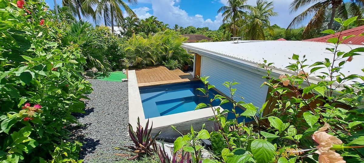 サン・フランソワに位置する理想的な住居 高級住宅街にあり、 市内中心部から車で2分、 マリーナ、ゴルフ、すべての 徒歩で行くこともできます。 ポワント・デ・シャトー、 素晴らしいビーチや ハイキングコース。 2名様用の魅力的な宿泊施設 2名様用の魅力的な宿泊施設です。 プライベートスイミングプール「バック 植生に囲まれた 緑に囲まれ、 美しい60平方メートルの木製テラス。
