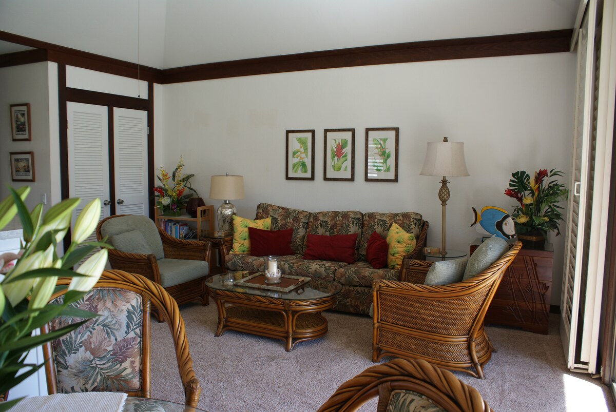 キアフナ・プランテーションの26棟にある1階のコンドミニアムで、部分的に海が見え、静かなガーデンラナイがあります。キアフナビーチまで徒歩わずか2分、ポイプビーチまで10分です。リビングルームとベッドルームにエアコン、カウアイ島の貿易風を楽しめるガラスを使用しないジャルージー窓、ビーチ用具、駐車場を備えています。また、プールやフィットネス施設など、ポイプ・アスレチック・クラブをすべてご利用いただけます。