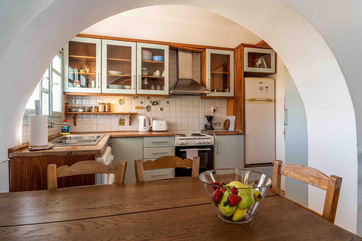 私たちの伝統的なキクラデス様式の家は100年前の歴史があり、以前は私たち家族のための夏の隠れ家でした。島の北海岸にある絵のように美しい漁村マンドラキアの海辺にあります。私たちの家は水辺にあります。 そのため、パノラマの海の景色を眺めることができます。私たちのベランダからは、エーゲ海の息をのむような景色を楽しむことができ、水に直接アクセスできます。玄関から出て、階段を降りてシュノーケリングや水泳を楽しむことができます。