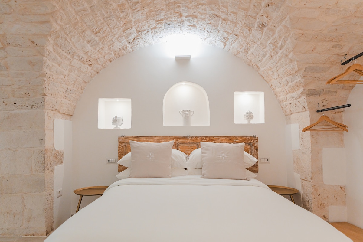 緑豊かで静かな何世紀も前から続くオリーブ畑に囲まれた18世紀のトルッロ(石窟)のB&B。 巧みに修復され、古代の特徴を保ちつつ、現代的な快適さを備えています。 マルジャの色彩、香り、味わい、穏やかで乾燥し、風通しの良い気候、有名な料理や地元の食材、乾式の石積みの壁、トルッロに魅了されてください。 数分の距離には、アルベロベッロのトルッリ、プティニャーノのカーニバル、カステッラーナの洞窟、アドリア海岸、イオニア海岸のビーチがあります。