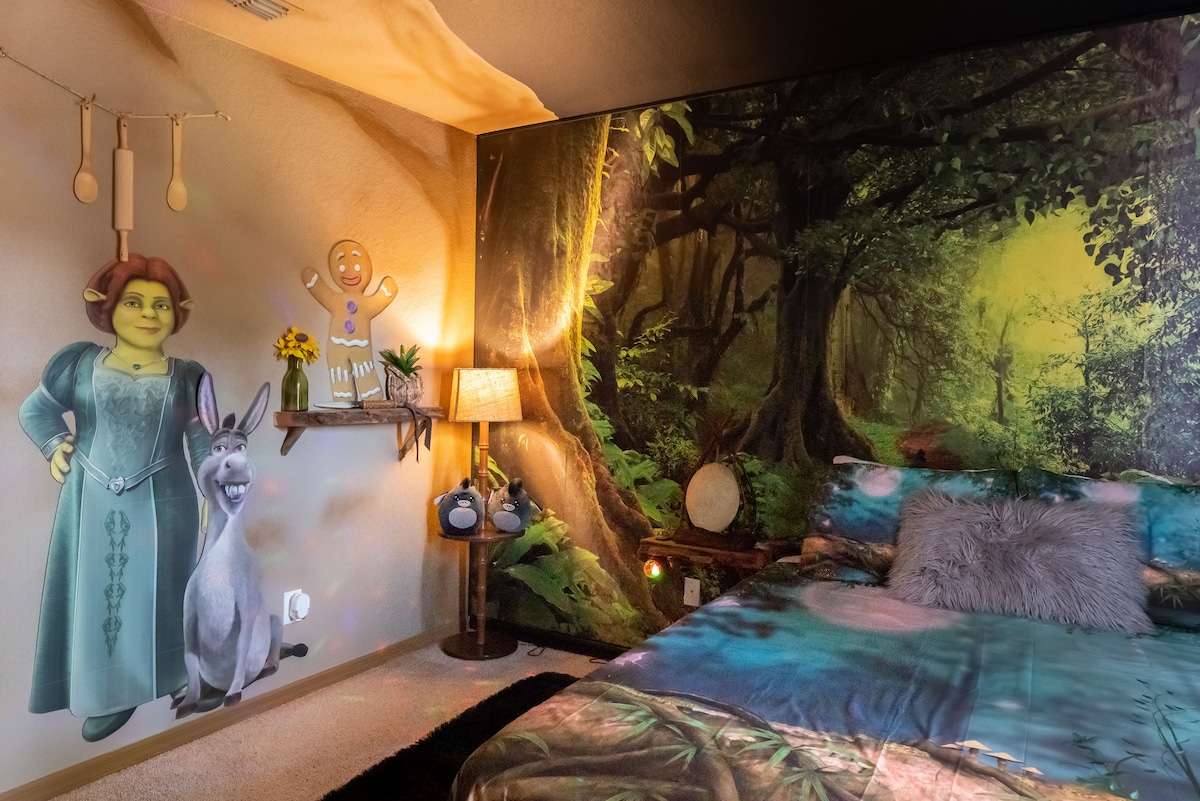 ディズニー&ユニバーサル近くの家族向けオーランドバケーションホーム ✨ 夢の旅へようこそ!広々とした4ベッドルーム、3バスルームのヴィラは、人気のアトラクションからわずか25分の絶好のロケーションにあります。テーマのある寝室、1階の寝室とバスルーム、リゾートスタイルのアメニティを備えたこの家は、忘れられない家族旅行のために設計されています。ゲストに好評な🌟理由: •テーマの寝室:ライオン・キング •リゾートスタイルのアメニティ:トロピカルプール、ホットタブ、フィットネスセンター、クラブハウス、ゲームセンターでリラックスできます。