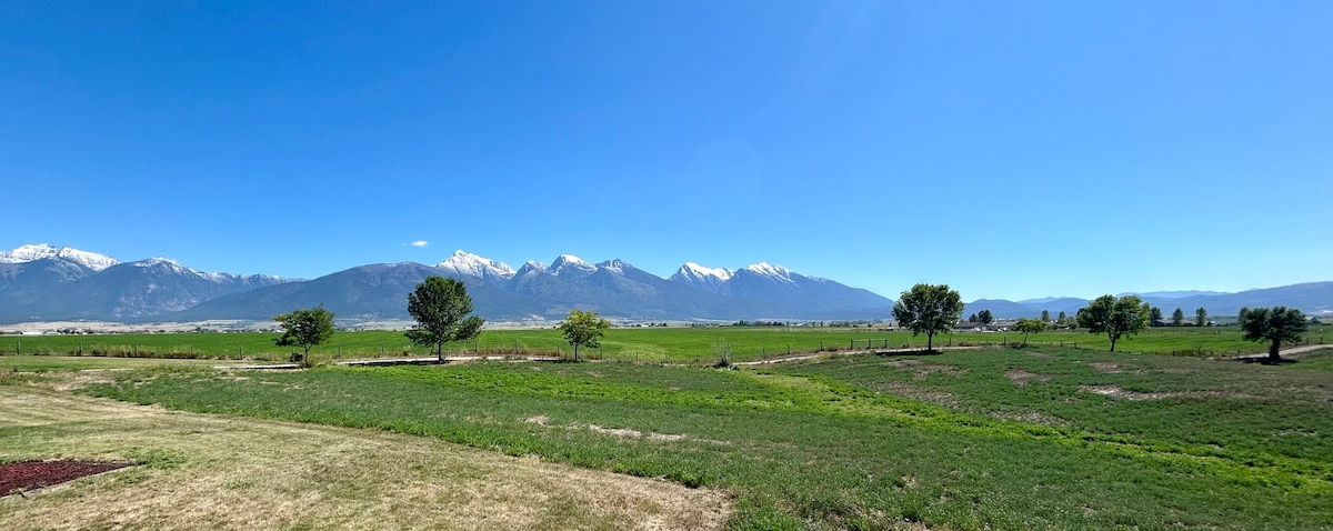 Relax and unwind in the countryside! Our 1 bed/1 bath country cottage has rustic charm while being newly renovated to include all the modern comforts you expect. The sauna is truly beautiful and it has the unique feature of a waterfall shower. Enjoy the beautiful mission mountains and park-like setting complete with creek and willow trees. There is no shortage of wildlife...deer, hawks, owls, geese, and pheasants to name a few, along with some cows and a horse grazing in the pasture out back.