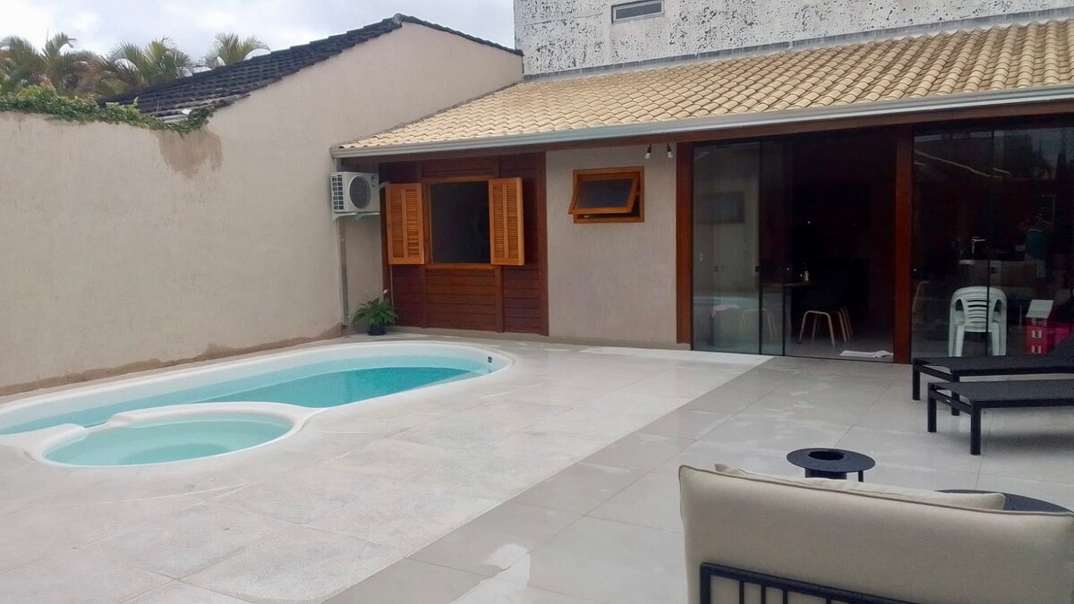 魅力的で居心地の良い新しい家で家族みんなでリラックスしてください。 モダンでデザインされた建物、太陽光発電のプール、広々としたレクリエーションエリア、設備の整ったバーベキューエリア、Wi-Fiで操作できるダイキンのエアコン付きの客室、ガスで温められた蛇口とシャワー、24時間監視アラームと屋外カメラ。 ビーチカート、椅子、パラソルをご用意しています。素敵な時間をお楽しみください。 イーリャ・ド・メル島への出発まで7分。
