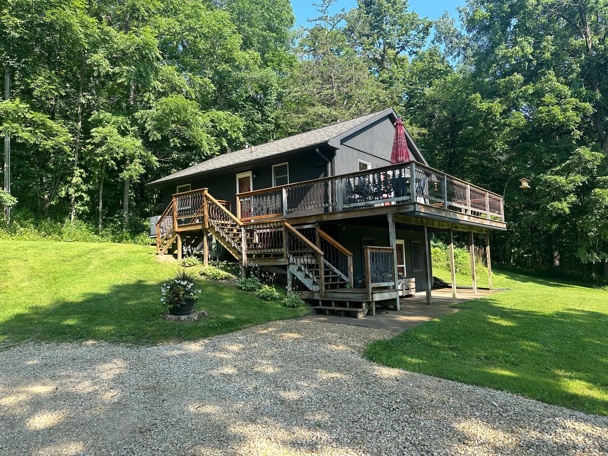 キャビンはルート川のサウスフォークの渓谷にあります。ファイヤーピット、ホットタブ、2つの大きなパティオ(どちらも屋外ダイニング付き)、そしてマスの小川から数歩のところにあるこのユニークな宿泊施設は、平和でロマンチックな休暇を過ごすことができます。ルート川の自転車道とレーンズボロから車ですぐのところにあり、歴史的な崖のある美しい田舎を楽しむのに便利です。