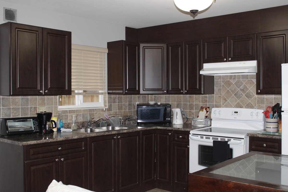 Tucked in a safe and pleasant neighbourhood, our guest suite is located inside a family home and has its own private walk out entrance for total privacy. With plenty of natural light, it is spacious, bright and cozy - ideal for anything from a weekend getaway to week-long business trip. The King size bed provides ample space for a restful sleep. Living room is equipped with a 50-inch smart TV. Netflix and Prime streaming are just a button press away.