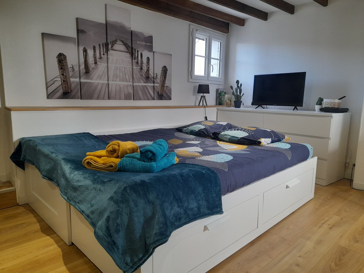 ヴァンヌの歴史地区と歩行者街の18世紀の邸宅の3階にあるワンルームマンション。 独特で明るく、とても静かで、改装済みです。 大聖堂、港、市場(水曜日と土曜日)、Halles des Lices、多くのレストラン(地域の名物料理を発見)、すべての商店のすぐ近くにあり、忘れられない滞在になるようにすべてが揃っています。