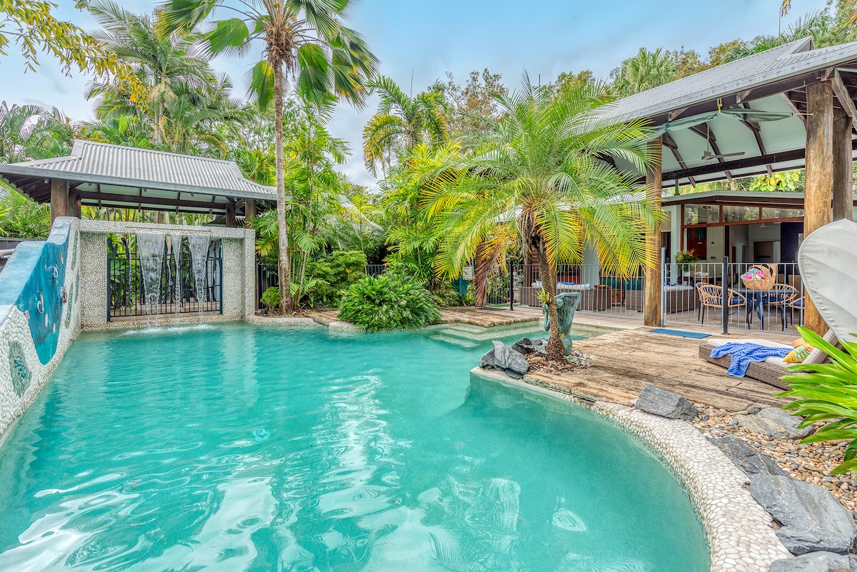 中に入って、荷物を置いて、私たちのプライベートな聖域でリラックスしてください。世界の頂点での生活と魅惑的なパノラマの景色があなたを魅了するでしょう。深い塩水のインフィニティエッジプールでリラックスして涼み、素晴らしい熱帯雨林と無限の景色を楽しむことができます。 コーラルシードライブは、2.6エーカーの静かな熱帯雨林の庭園にあり、モスマン峡谷からわずか5分、ポートダグラスと周辺のビーチから15分、町の便利な場所まで車でわずか5分です。