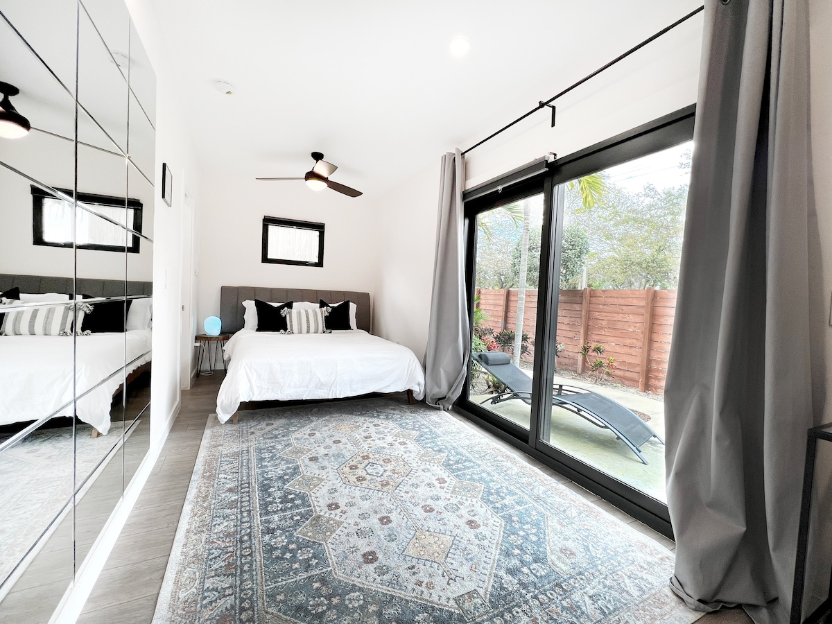 Questions? Just ask, no matter how late at night! Very small, no kitchen at all. Just a bed and a bathroom. You have a private patio with your own gas grill. You can also use the heated salt-water pool, the laundry room, and the large fenced backyard, all of which are shared by ten units. Free parking.