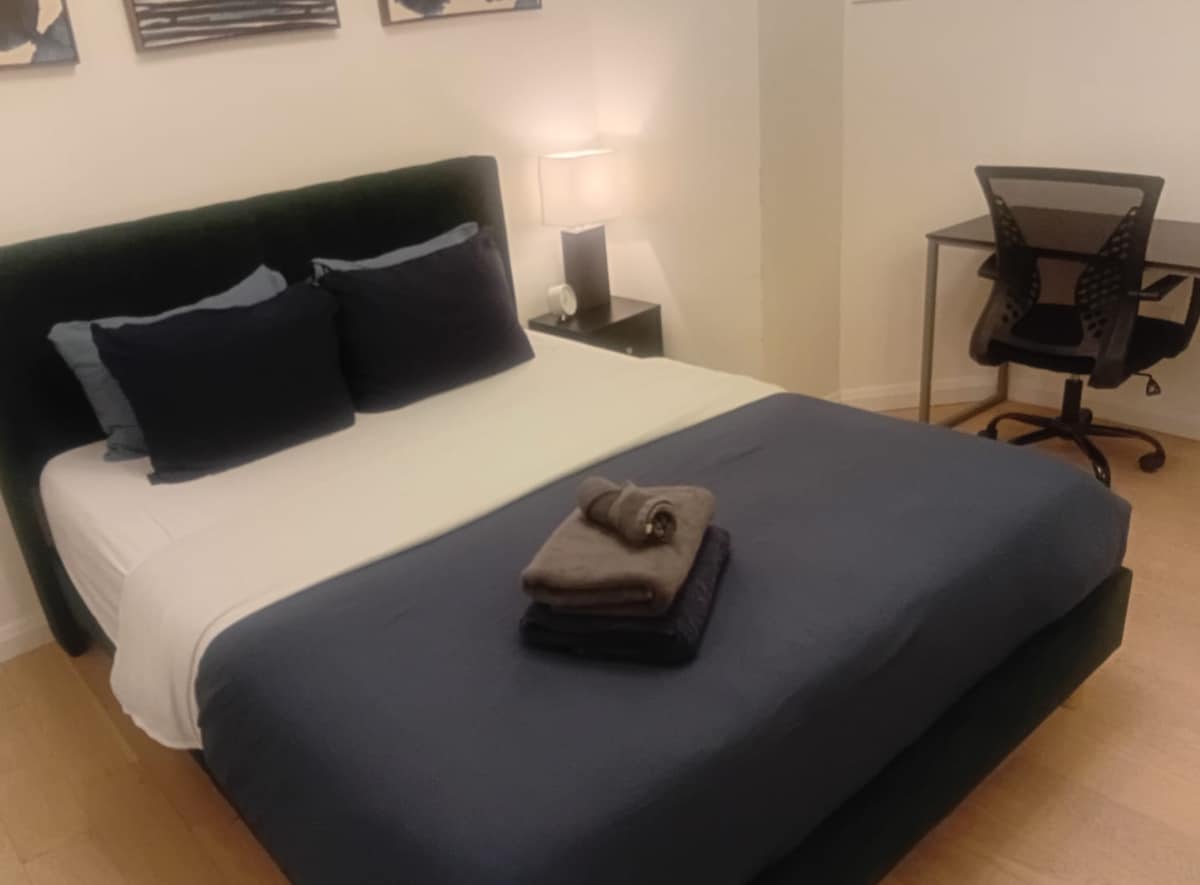 合法地下室 - このシックなお部屋は最大5名様に快適にお過ごしいただけ、家具が完備されています。 寝室は2部屋あり、それぞれ2名様まで宿泊可能で、リビングルームには5名目のゲスト用のデイベッドが1台あります。 1つの寝室にはクイーンサイズのベッドがあり、もう1つの寝室にはダブルサイズのベッドがあります。 また、寝室に1台、リビングに1台、合計2台の書斎テーブルと椅子があります。 細心の注意を払って設計されたキッチンは、モダンでラグジュアリーな雰囲気を誇っています。 スタイリッシュな洗面所には、立ちシャワーが備わっています。