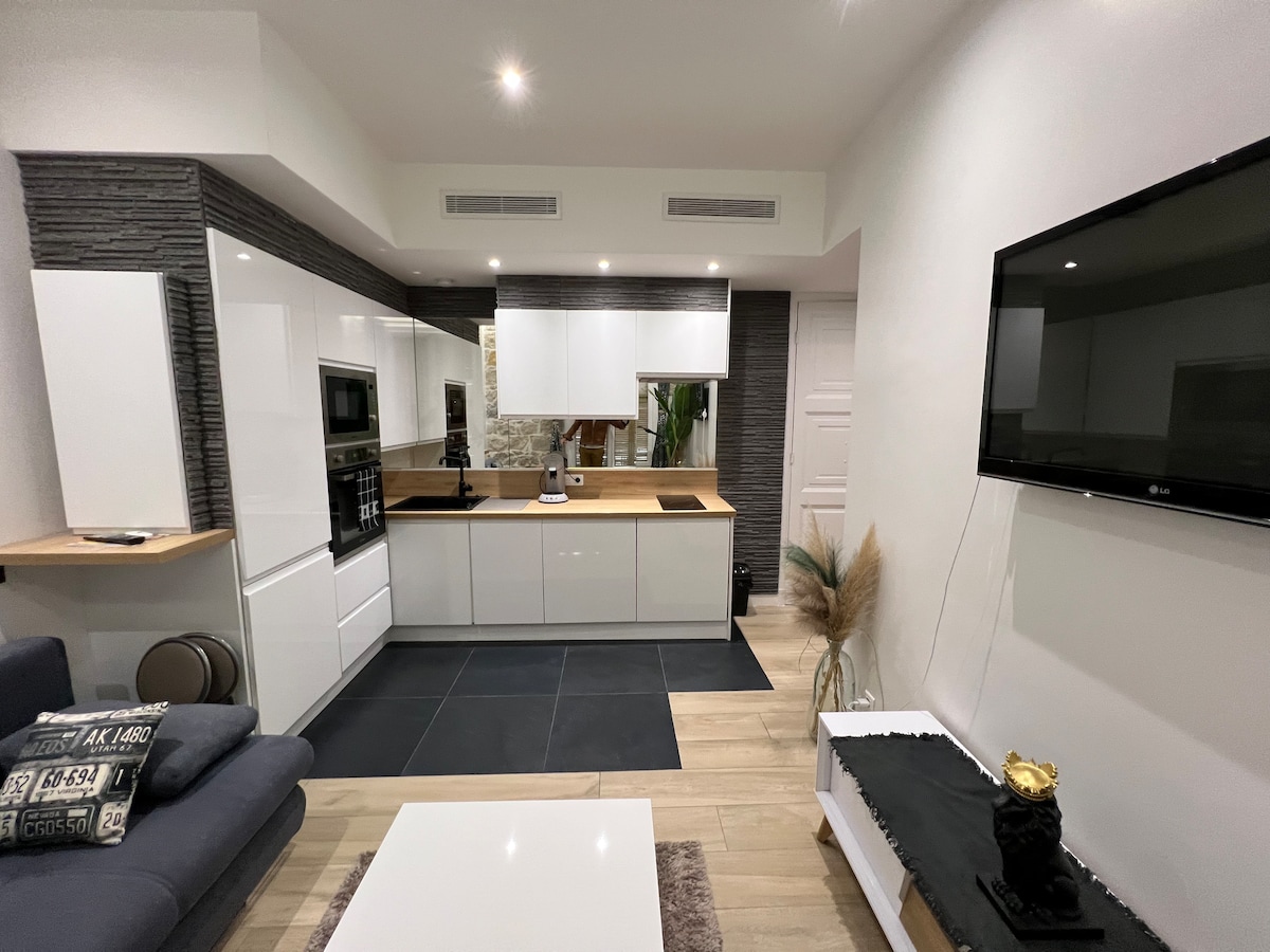 本格的なニソワの建物の最後の階にある、完全に改装された、設備(+エアコン)の魅力的なアパート。 18フィートのバルコニーで朝食やワインを楽しみ、陽気で居心地の良い雰囲気をお楽しみください。 旧市街、レストランやワインバーがある有名な場所、ビーチからわずか数歩の理想的なロケーションです。 現在の衛生状態を考慮して、宿泊施設を健康に保つために必要なすべての措置を講じています
