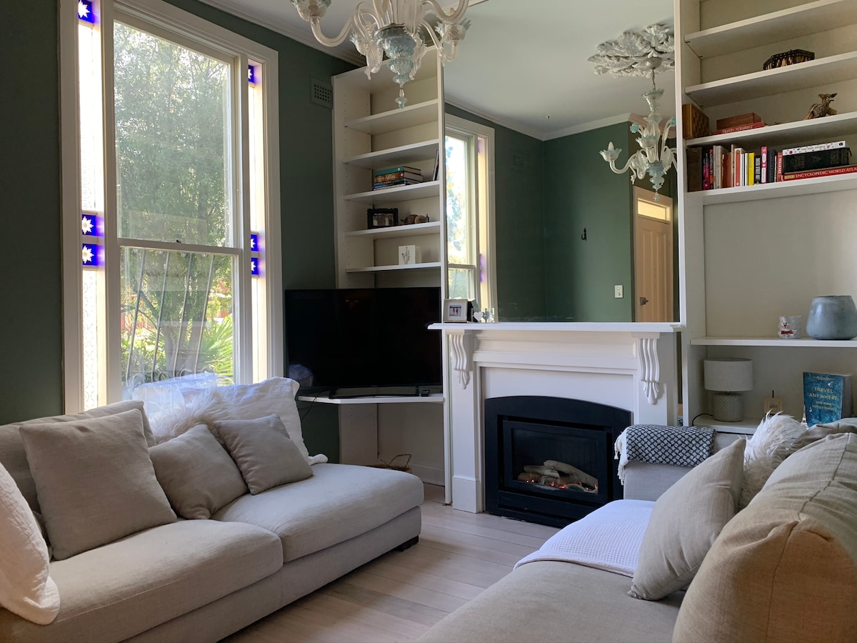 Converted Victorian Mansion with secure off street parking included and romantic gas log fire, opposite Catani Gardens and St Kilda Beach. Located in a quite leafy street. Extremely comfortable queen sized loft bedroom. Smart TVs with Netflix and luxurious leather couch! The Loft comes with a residents parking permit for one car only. The permit is for parking in local parking zone 22 just on Park Street.