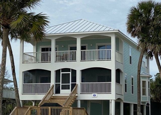 Welcome to EsCape Vibes - a beautiful GULF-FRONT home in Cape San Blas, FL! ★ Panoramic ocean sunsets ★ Secluded, quiet beach ★ Heated, Private pool ★ Views of the gulf waves ★ 3 Kings - each with en suite & deck access ★ Elevator ★ Bunk room (4 Fulls), with en suite bathroom ★ Outdoor shower+bathroom