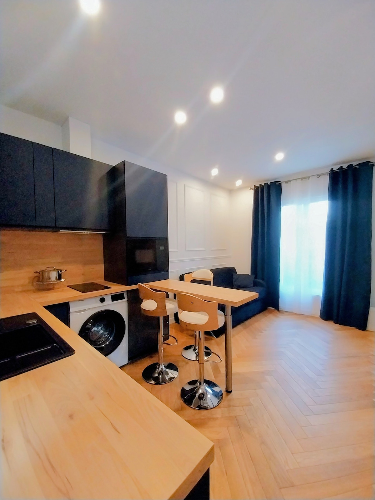 Appartement 3 pièces à Issy centre refait à neuf et très bien agencé avec matériaux et finitions de qualité 52m2 dans un immeuble sécurisé avec ascenseur - un séjour avec salle à manger, salon, TV - une cuisine neuve entièrement équipée haut de gamme - 2 chambres (1 lit 160 et 1 lit 140x200) avec placard/rangement - une salle de bain avec douche à l'italienne et une salle d'eau Meubles italiens et sanitaire/électroménager allemand Simple, élégant et espace bien utilisé Non- accessible aux PMR