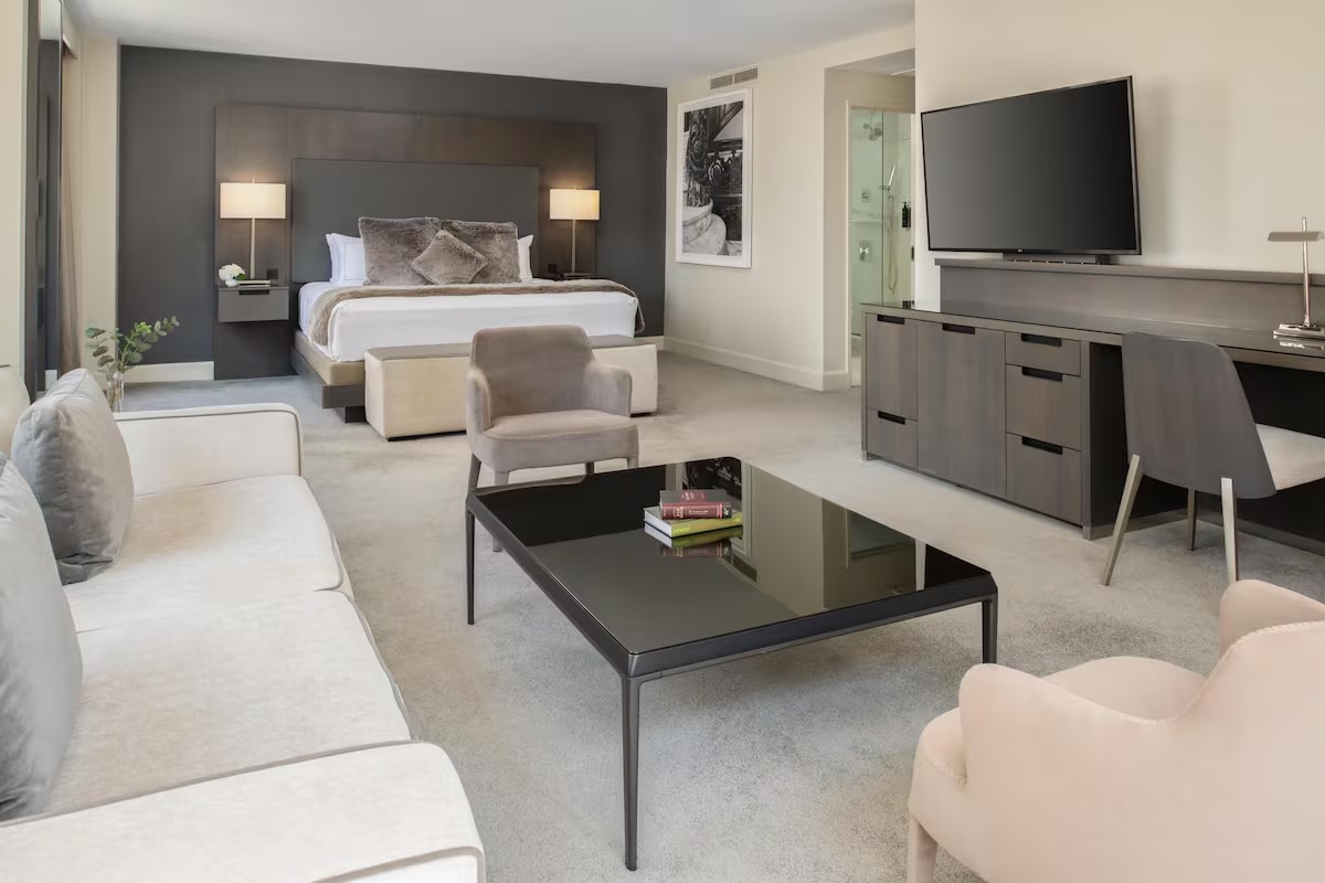 快適なキングベッド|ペットOK。屋内プール&ジム