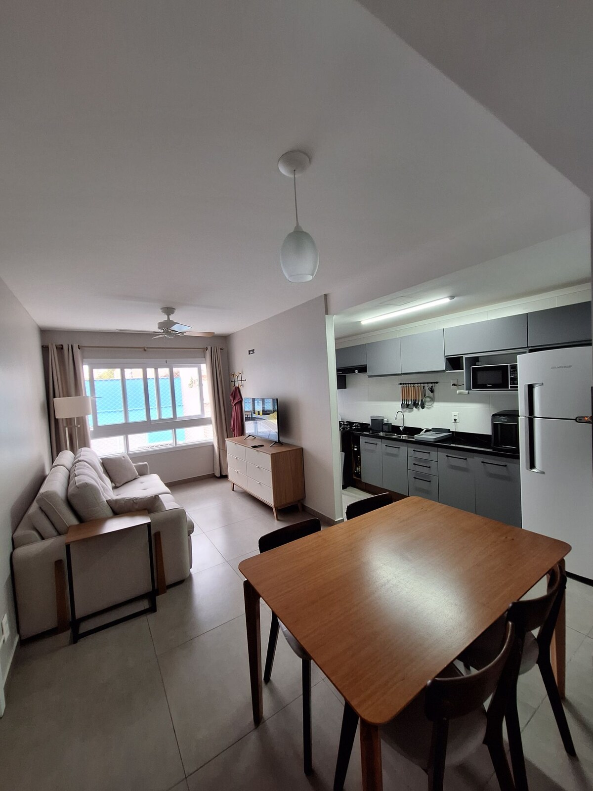 居心地が良く、魅力的でとても素敵なアパートです! 高層階にあるため、一日中豊富な自然光があり、日当たりが良く、風通しが良いです。 新しく装飾され、すべてが新しく、整頓され、清潔で機能的です。 アパートは全面にエアコンが設置されており、バスルームにはガス暖房が備わっているので、とても快適です。 歴史的なアベニーダ・ジョアン・ペソアの見晴らしがあり、その堂々としたカリフォルニアヤシの木々の間、街の地平線と美しい夕日を眺めることができます! 魅力的で快適な寝室!