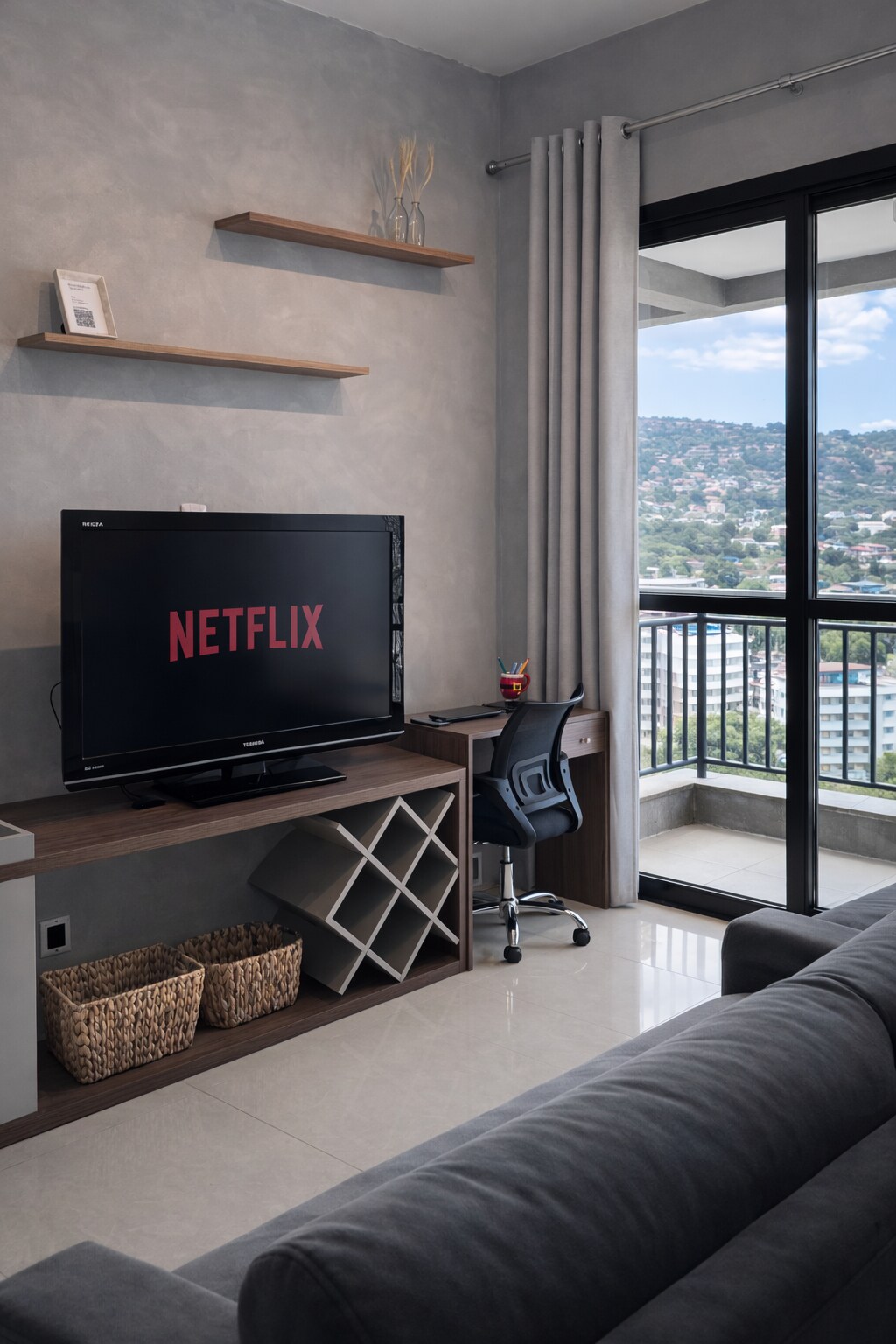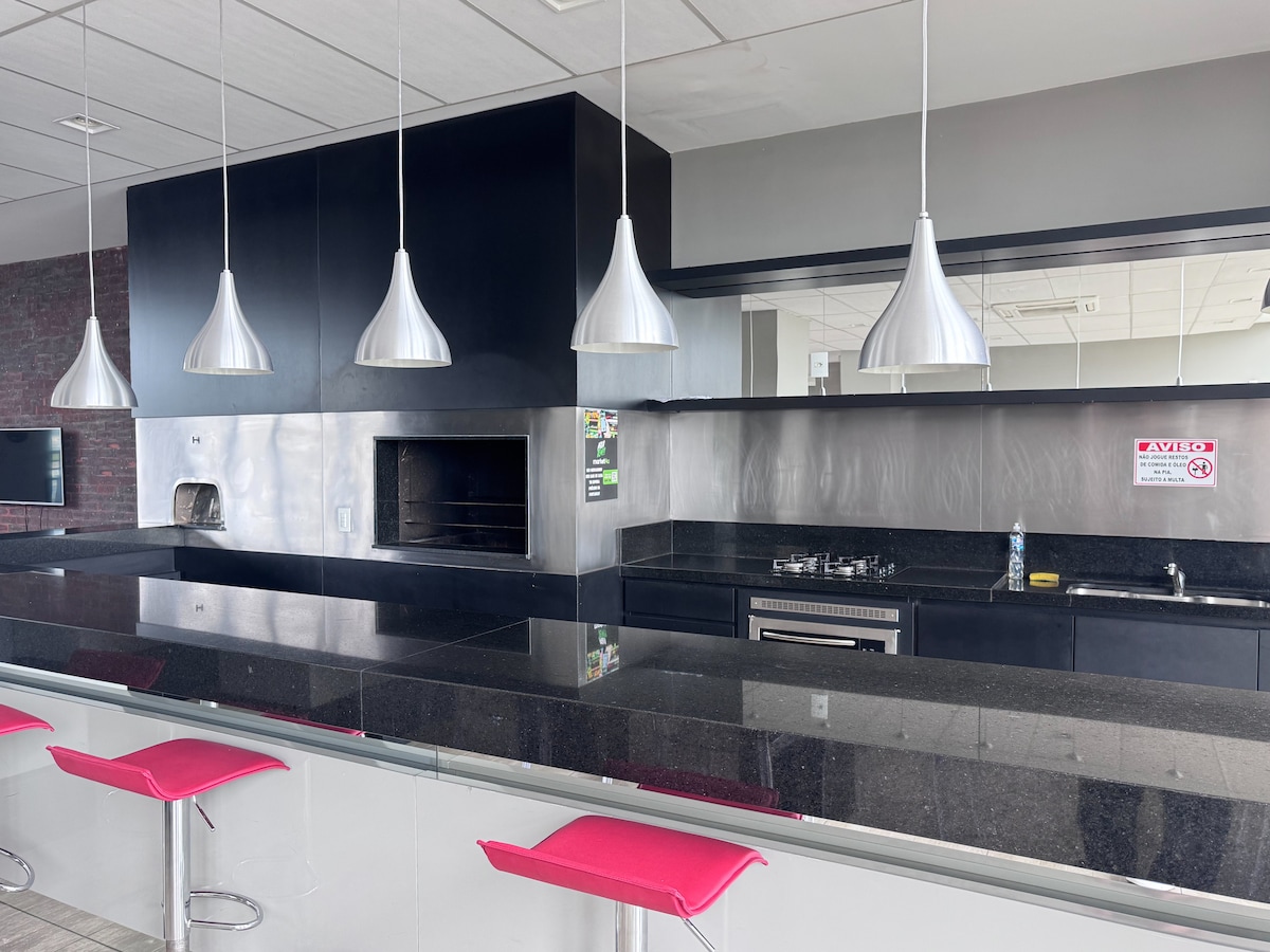 豪華なコンドミニアムにある、モダンな装飾のスタジオで、ご滞在中に必要なものがすべて揃っています。 43インチのスマートテレビ、Wi-Fi、エアコン、天井ファン2台、デュプレックス冷蔵庫、電子レンジ、電気オーブン、電気コーヒーメーカーとケトル、電気スチームアイロン、2つの電気コンロ。快適さと安全性を犠牲にすることなく、利便性を求める人に最適な物件です。