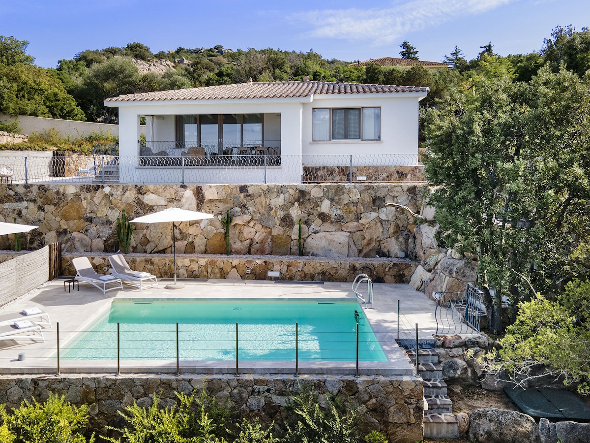 海、ラ・シンタ湾、タヴォラーラ島の魅力的な眺めを楽しめる最高にモダンなヴィラ。 温水海水プール、エアコン、床暖房により、一年中ご利用いただけます。 2023年7月に完成した美しい家です。 居心地の良い、モダンで豪華なヴィラです。小さな庭と美しいサンテラスがあり、4x9mの塩水プールは逆流システムを備えており、泳ぐことができます。 静かでありながら中心部に位置する立地をお楽しみください。