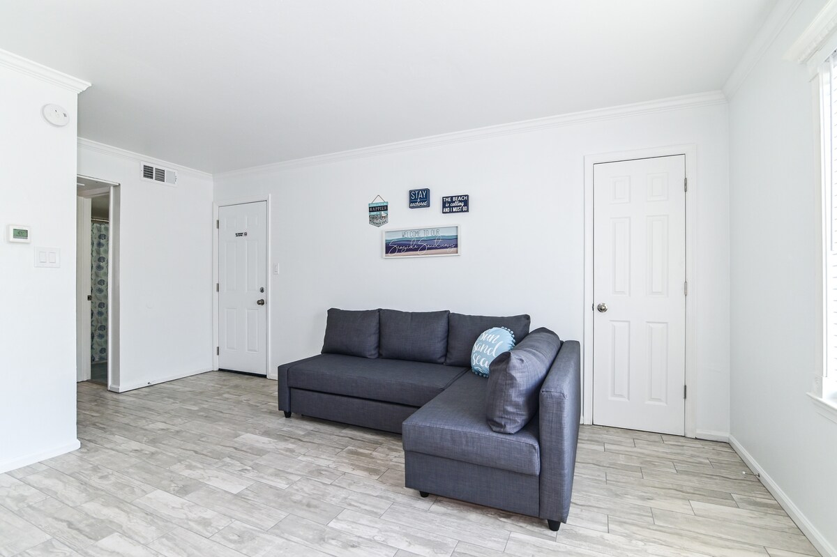 ご家族やお友達と一緒に、この豪華に改装された宿泊先でくつろぎましょう! この2ベッドルーム、1バスルームのビーチハウスは海から1ブロックです。 このユニットは大人4名様まで宿泊可能です。 各部屋にスマートテレビが備わっており、インターネットが提供されています。 キッチンには冷蔵庫、電子レンジ、オーブン、食器洗い機、トースター、キューリグ、食器、カトラリー、ボウル、鍋、フライパンなどが備わっています! ショッピングやレストランまで徒歩です! この人気のバケーションスポットは、まるで自宅のような居心地です。