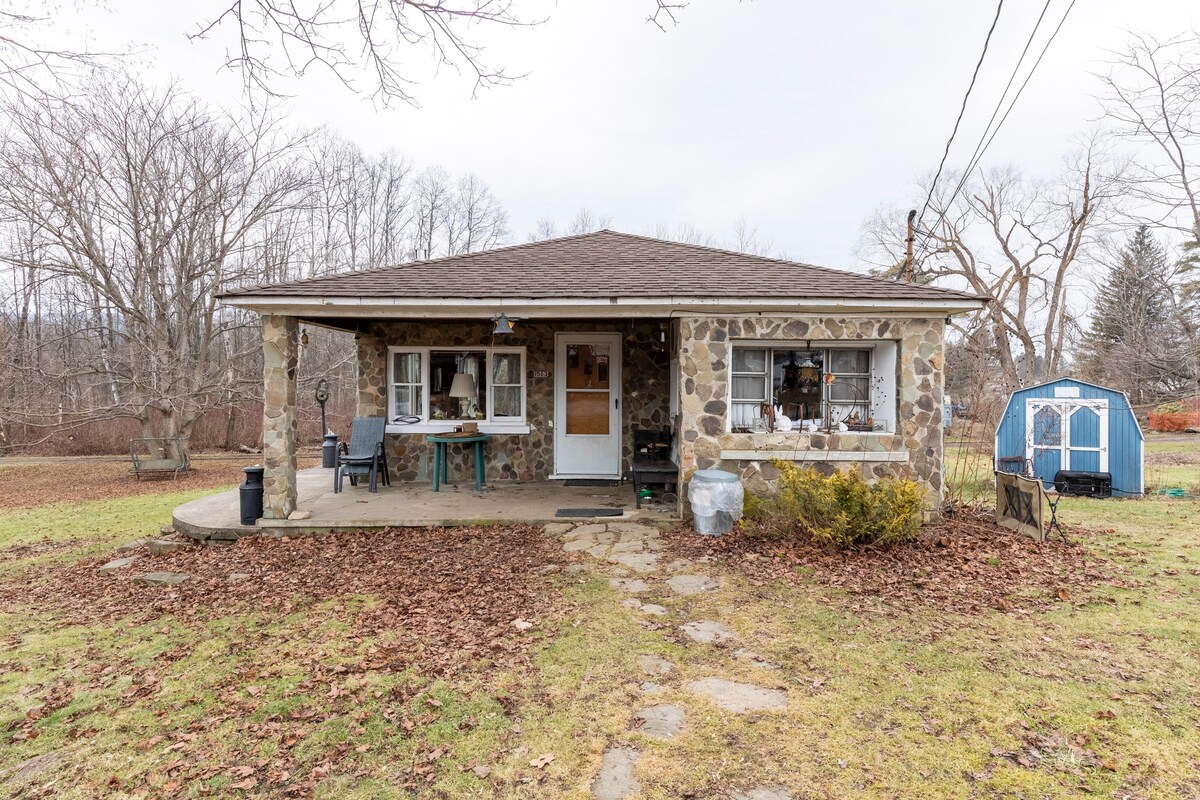 The perfect spot to relax, read, write meditate. View birds, wildlife in an old forest along the Allegany River from the porch, deck or large picture windows. Take a walk. (fast Wi Fi, 32 inch TV and echo dot) Families and dog owners will like the large yard (no fence, warning ticks and Lyme disease in the area). My grandmother designed the cottage around a vintage house trailer (tiny house)1956. There are many unique and cleaver features. Family mementos through history are on display.