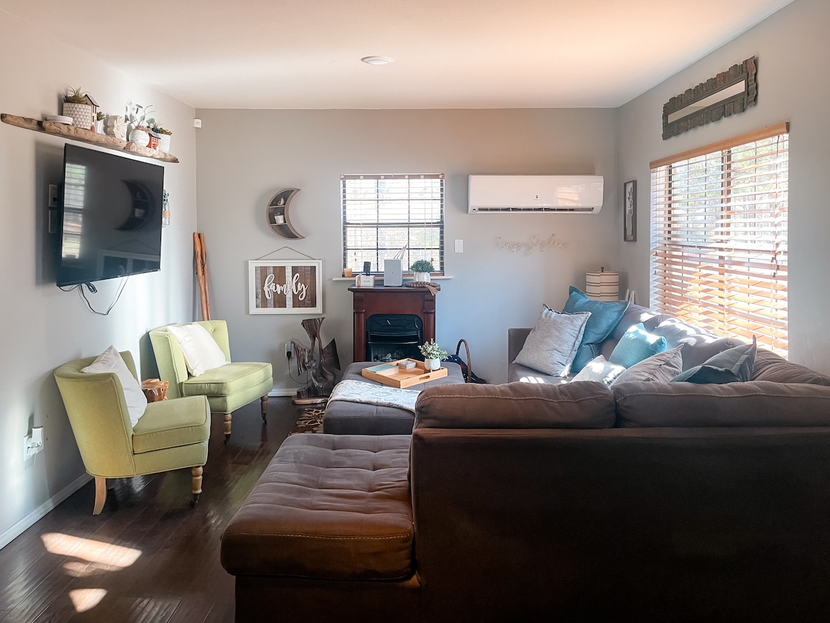 必要なアメニティがすべて備わったカスタムキッチンを備えた素敵な小さな家。 製氷機付き冷蔵庫。 ポッド付きキューリグコーヒーポットが用意されています。 裏庭の景色、巨大なピーカンの木陰にある小さなデッキ。 専用バスルーム付きの寝室が2部屋あります。 各ベッドルームには、衣類や雑貨を収納できる棚付きのクローゼットがあります。 家から3ブロックのところに地元の食料品店があります。 フォートスミスから16分、ポトーから14分、1 -40から20分。