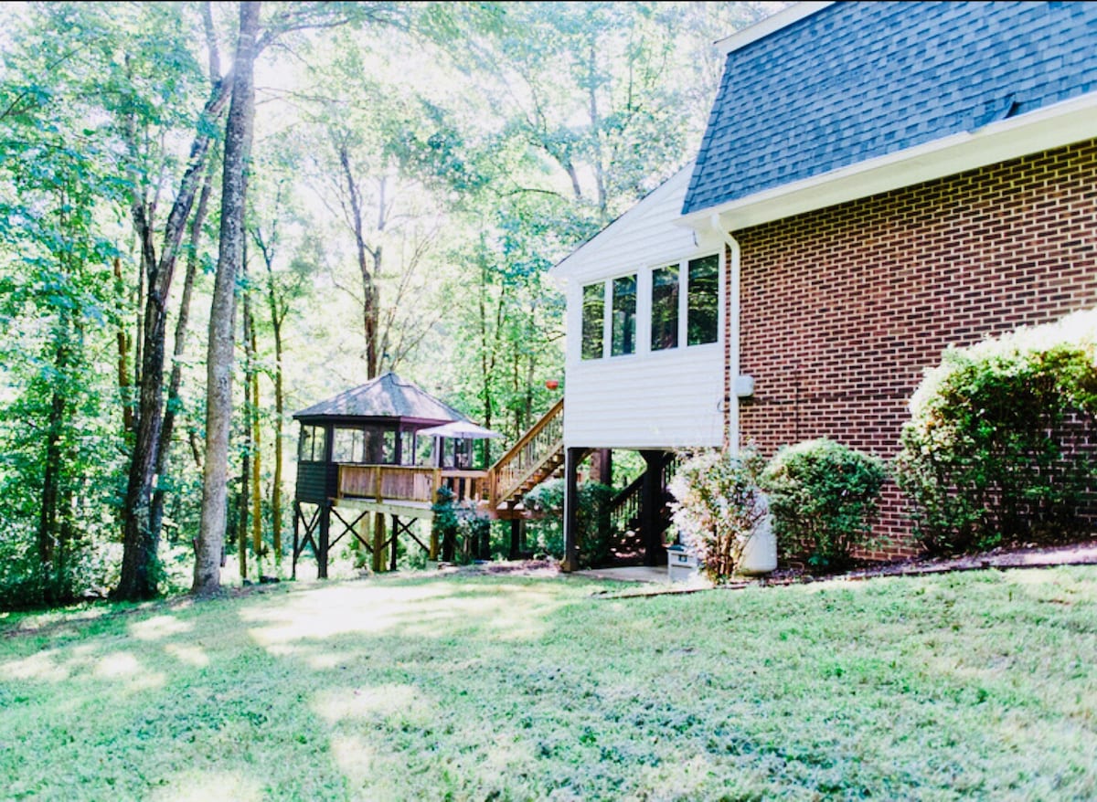 完全にプライベートな2ベッドルームのアパートです。 独立した玄関、ランドリー、キッチン、ホームシアター、グリル、暖炉。 20エーカーの森に囲まれた隠れ家で、ハリスクリークの隣でリラックスしたり、庭で鹿を観察したり、フクロウやコウモリを見つけたり、キャンプファイヤーを作って、流れる水の音を聞いたりできます。 暑い日には、中に入って涼しく過ごしましょう。 リンチバーグのダウンタウンまでわずか10分、リバティ大学まで20分です。 ウォルマート、フードライオン、シーツまでわずか3マイルです。 家族の思い出作りやロマンチックな旅行にぴったりです!!