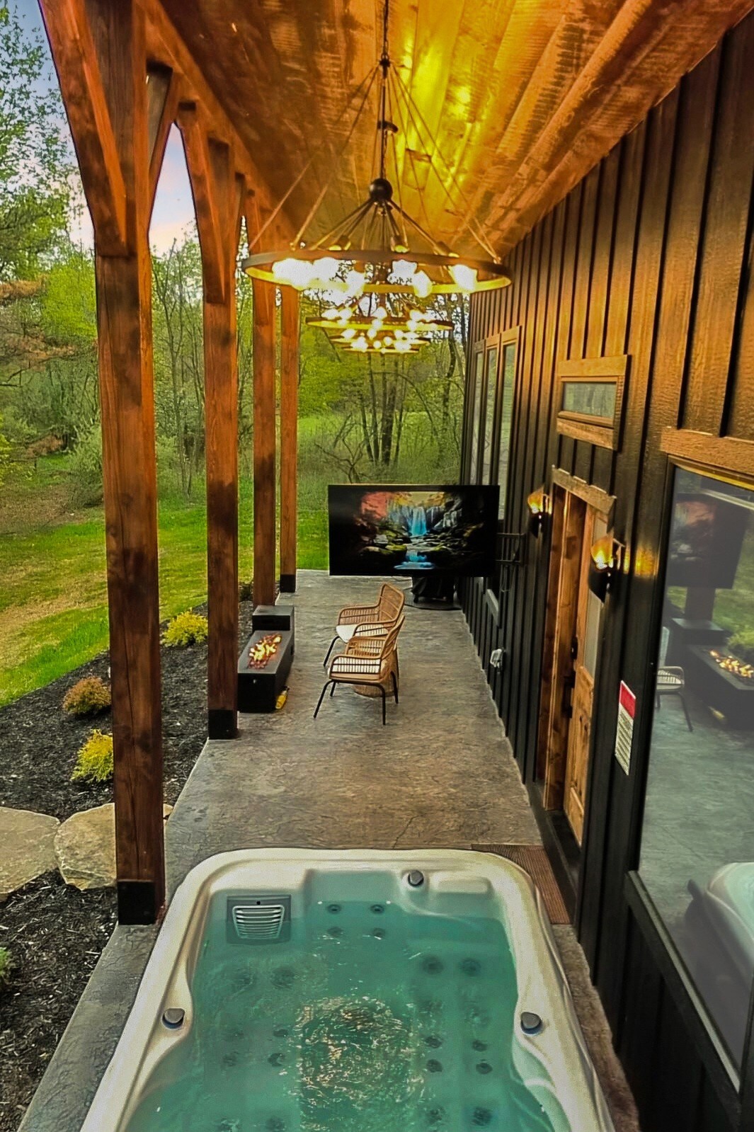 The Chalet in the Orchard was designed with Romance, Luxury, and Relaxation in Mind. The Chalet offers many first class amenties to Enjoy with your Partner. * Movie Theater with Surround Sound * Tonal Digital Home Gym * Dedicated Work Space * Fast Wifi * Sauna * Hot tub * Outdoor TV * Gas and Wood Burning Fire Pit * Private outdoor Seating * Large Soaking Bathtub * Luxury Stone tile Shower * Heated Tile Bathroom Floors * Full Kitchen * Breville Espresso Machine * King Bed