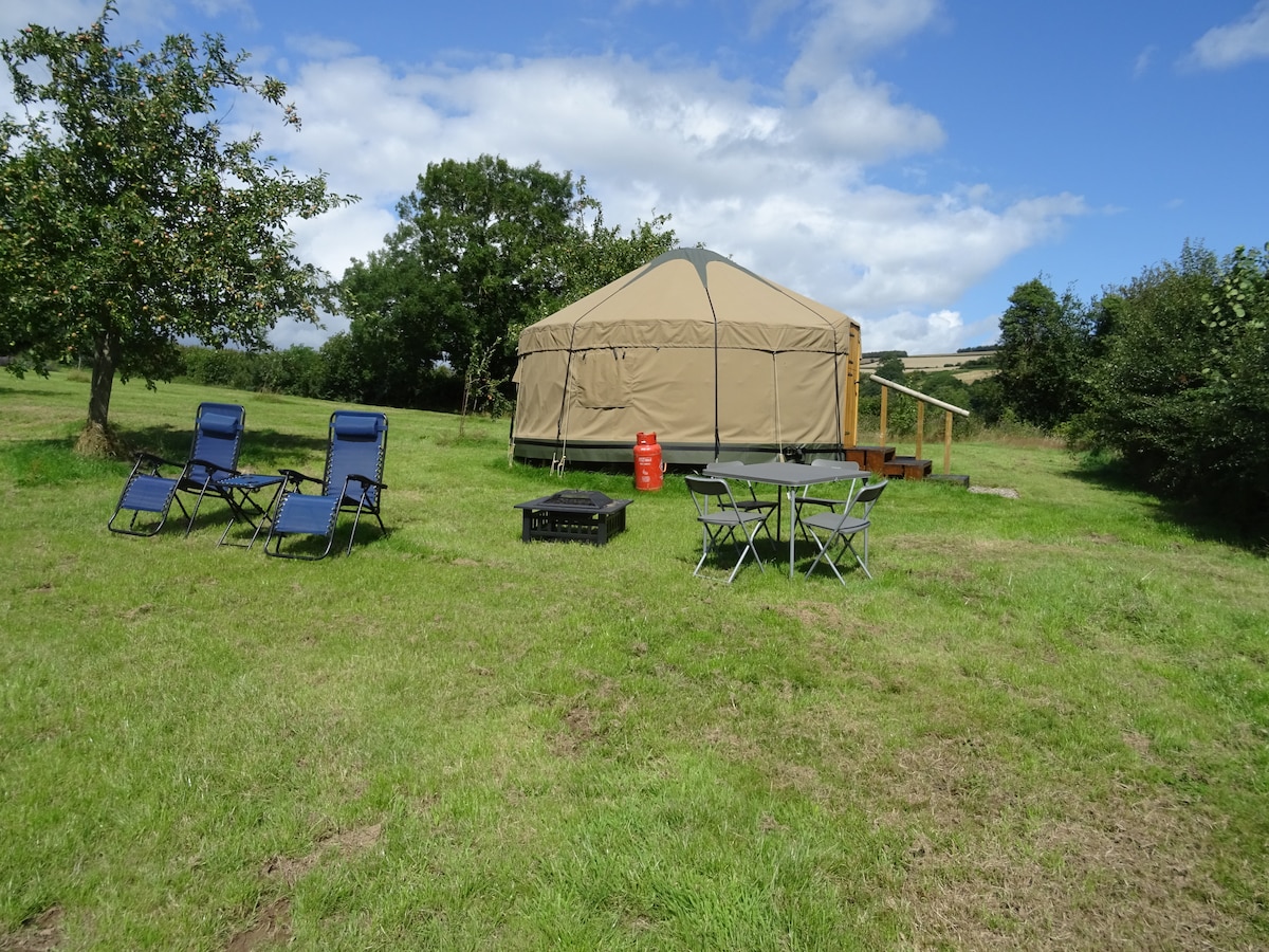 ウェールズ・マーチズの素晴らしい田舎とイングランドを見渡すことができる、美しいモンゴル風ユルト、Brocks Denで、あなただけの平和な聖域をお楽しみください。 快適でオフグリッド、設備の整った隠れ家で、木々に囲まれ、薪を燃やすジャグジーと焚き火台付きバーベキューがあります。 近くには温水シャワーとコンポストトイレがあります。 ユニークで思い出に残る滞在に必要なものはすべて揃っています。 ぜひ、元気を取り戻しに来てください。