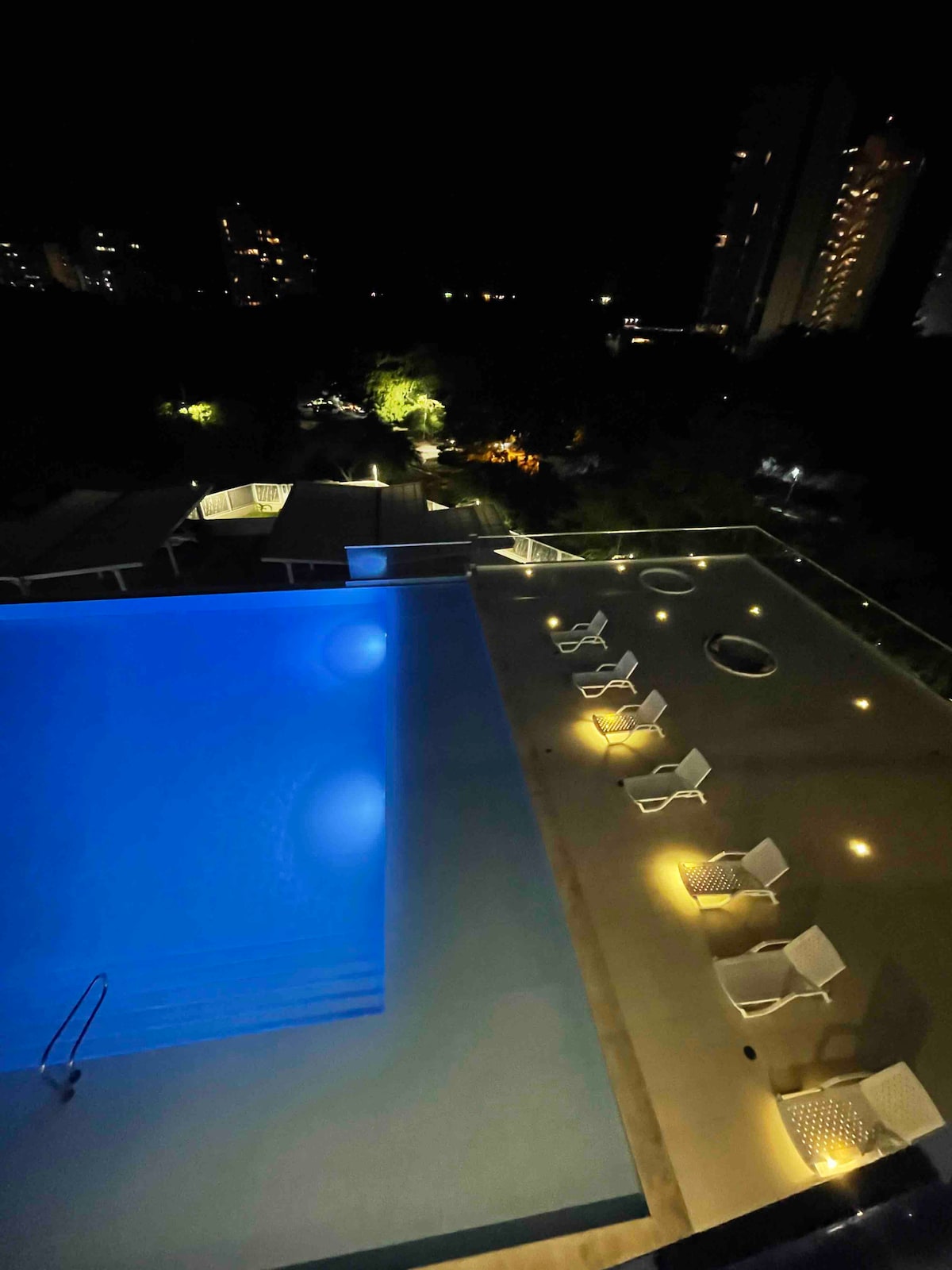 ロダデロのプールと駐車場の素晴らしい眺め