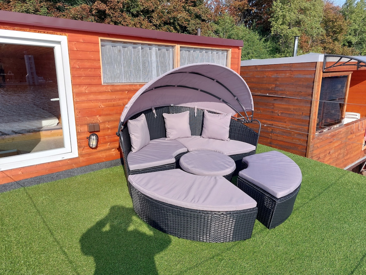 このユニークでロマンチックな宿泊先はきっと気に入るはずです。 ディテールと快適さへの情熱をたくさん持って作られた、とても魅力的なハウスボート。 忘れられない滞在を体験し、帰りたくないでしょう。釣りをしたり、魚でいっぱいの川の世界を観察したり、パドルボードを試したりすることができます。 ハウスボートにはダブルベッドと小さな赤ちゃん用のベビーベッドが備わっています。 設備の整ったキッチンでテイスティング体験をご用意します。 1日を過ごした後は、暖炉のそばでリラックスしましょう。 デッキに座って、水位の静けさを観察します。 ハウスボートのすぐそばに駐車場があります。
