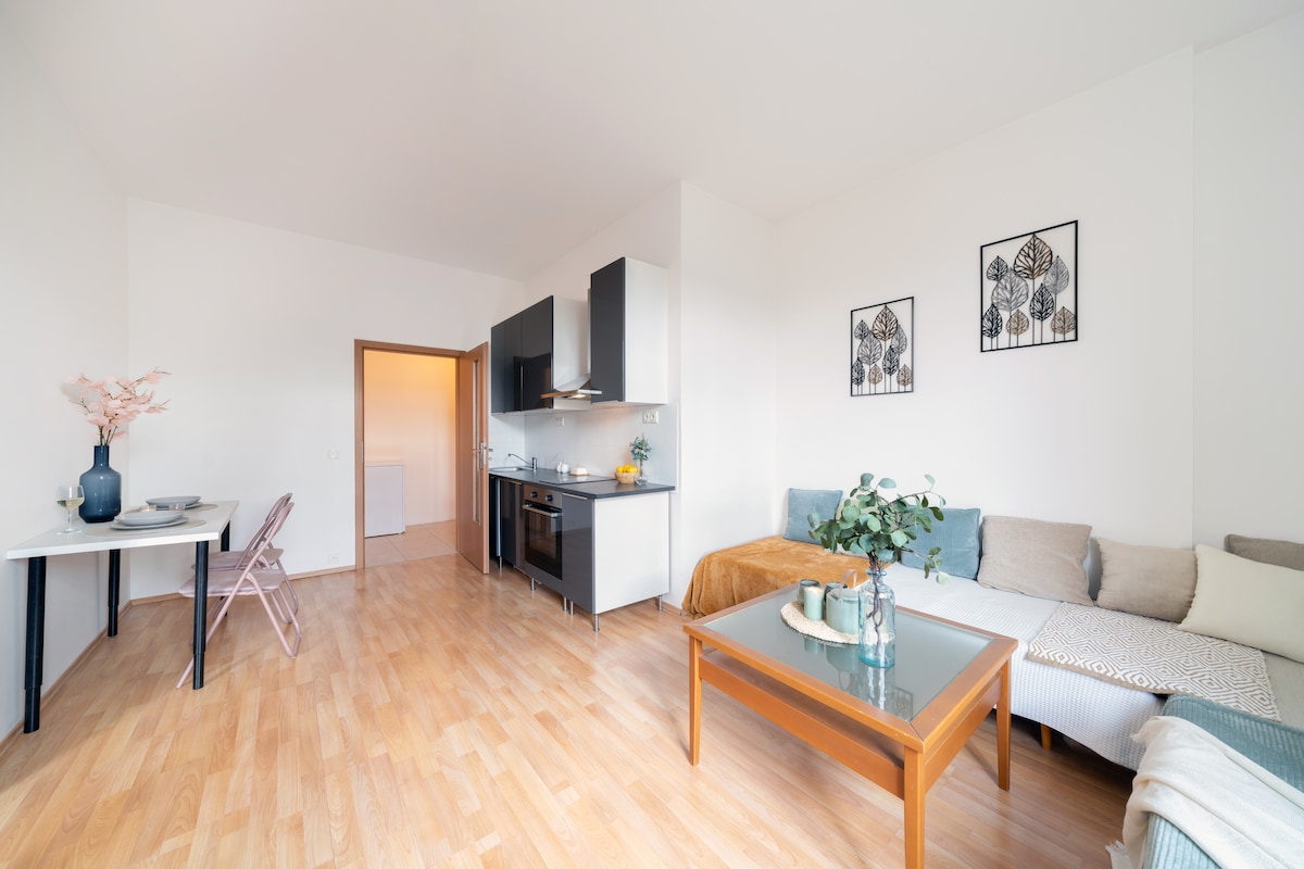 プラハの主要な観光スポットからわずか15分のこのモダンなアパートは、快適さと利便性を重視して設計されており、手間のかからない滞在をお約束します。エアコン、設備の整ったキッチン、バルコニーからの眺めを楽しみながら、リラックスしたひとときをお過ごしください。隣には居心地の良いコーヒーハウスがあり、建物内の駐車場を割引料金で予約することができます。自宅のような快適な宿泊先をお探しのカップル、お友達、またはおひとり様に最適です。