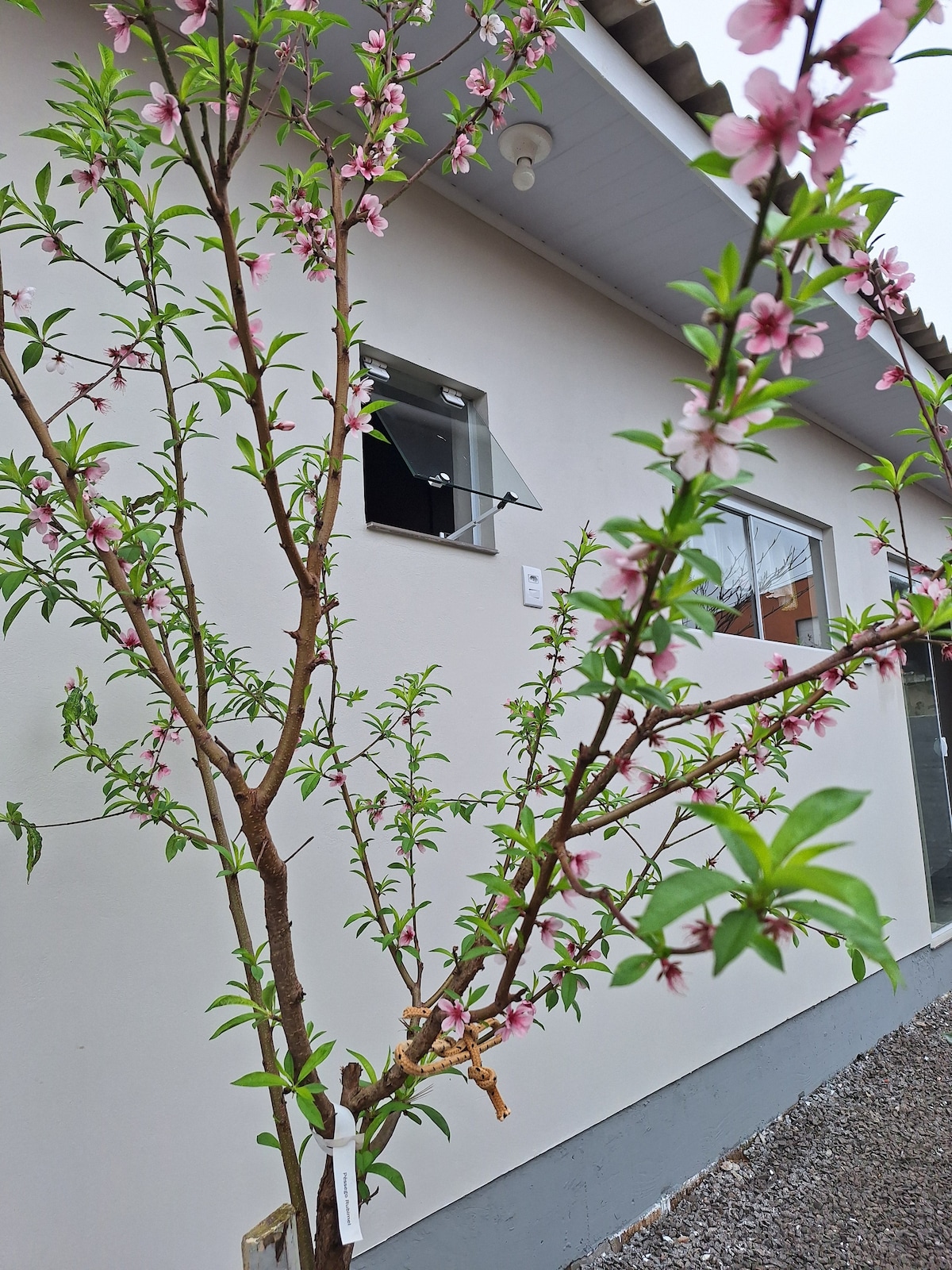 Lindo studio completamente mobiliado e decorado à uma quadra da Praia da Cal e duas quadras da Lagoa do Violão. Vista para o mar com sacada privativa. Ar condicionado, cama queen, churrasqueira, Wi-Fi, forno multifuncional (micro-ondase forno), cooktop, geladeira. Desfrute do que há de melhor em Torres em contato com a natureza!