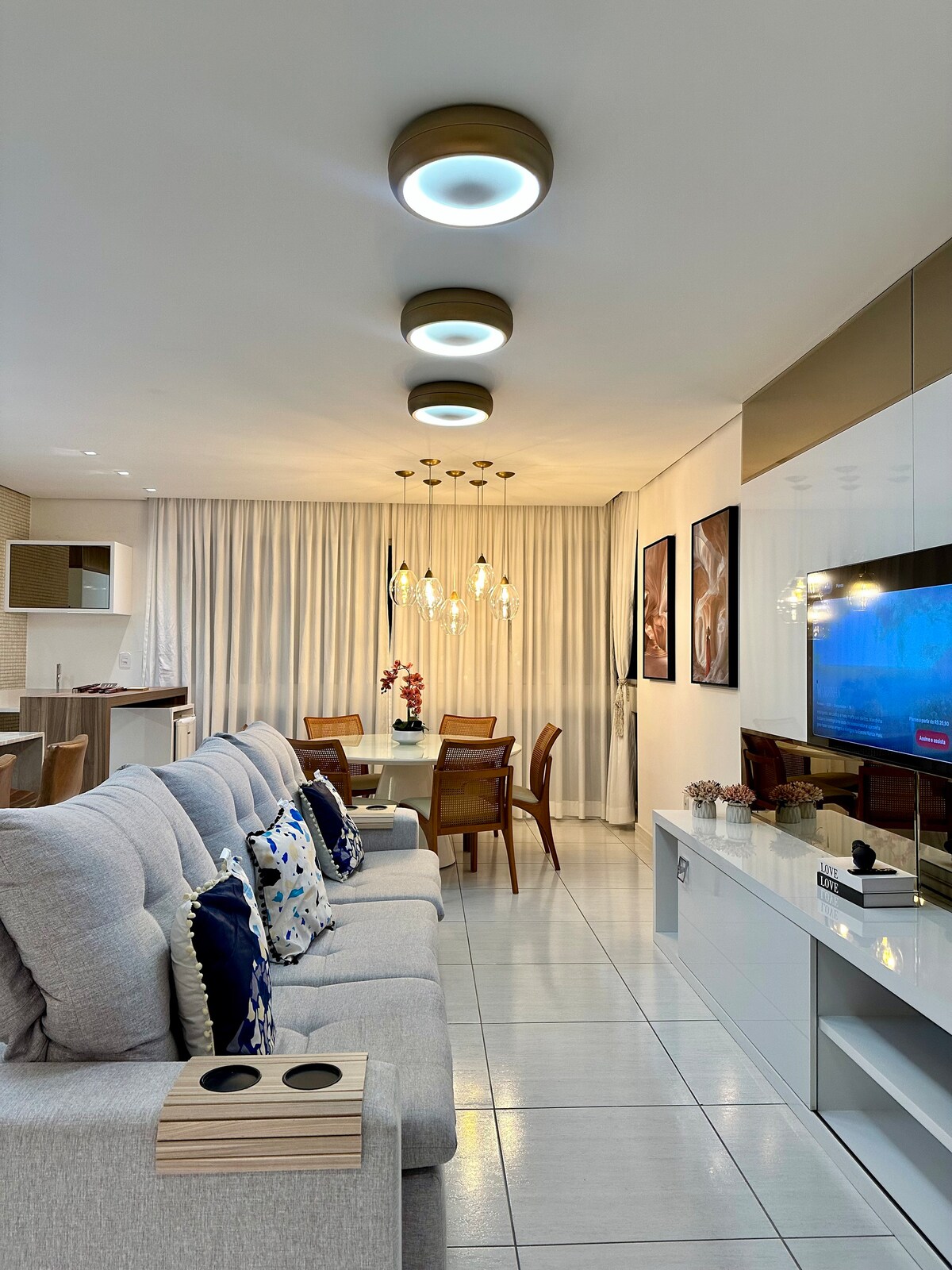 Divirta-se com toda a família e amigos neste lugar cheio de estilo. Apartamento cuidadosamente elaborado com projeto arquitetônico e luminotécnico para seu melhor conforto e dias incríveis. O espaço foi todo pensando e criado para que tenha o conforto e todos os itens necessários para uma estadia perfeita, seja de férias, descanso ou trabalho para que se sinta em casa. Localizado na Barra Sul um dos mais badalados e movimentado da cidade que também é conhecida como " Dubai Brasileira ". .