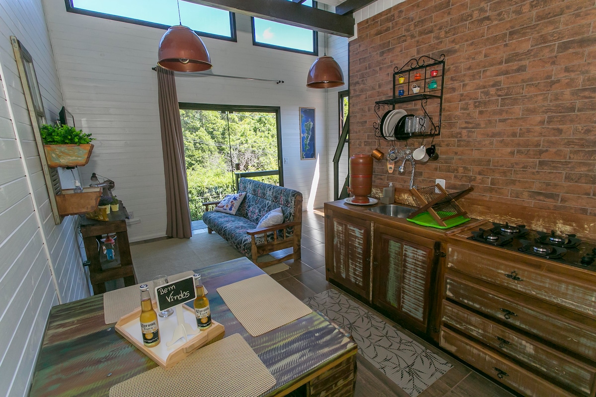 Estúdio vintage com quarto e deck com vista pro nascer do sol