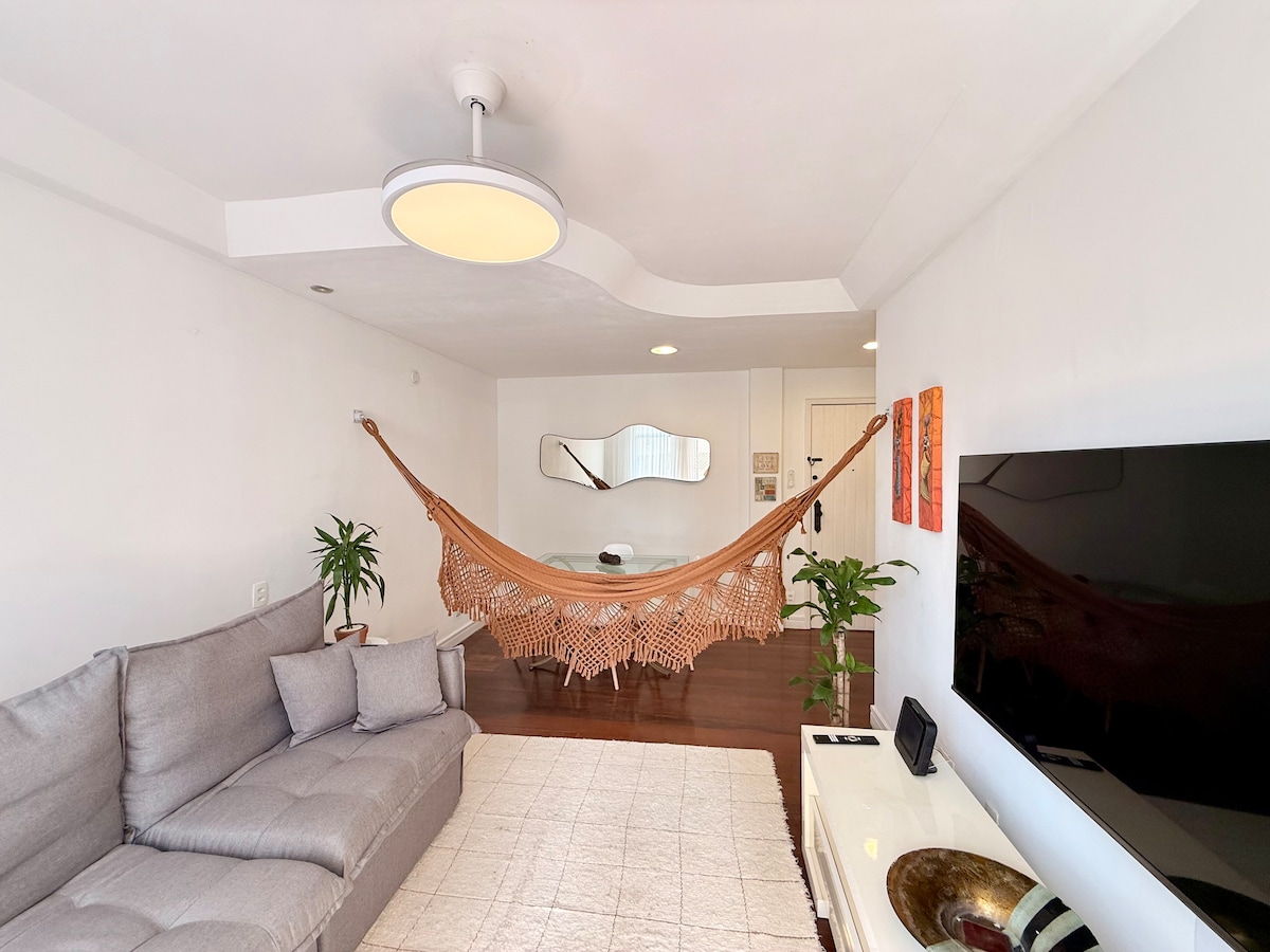 Enjoy a stunning and unique view of both the ocean and the mountain in a centrally located 2 bedroom renovated apartment in Leme, Copacabana ideal for families and couples. The apartment is cozy and has everything you need to make you feel at home. A very spacious and stylishly decorated living room, and a fully equipped apartment. One bedroom has a queen bed, the second bedroom has 2 single beds, and there are 2 more mattress/futons that can be placed in the living room if needed.