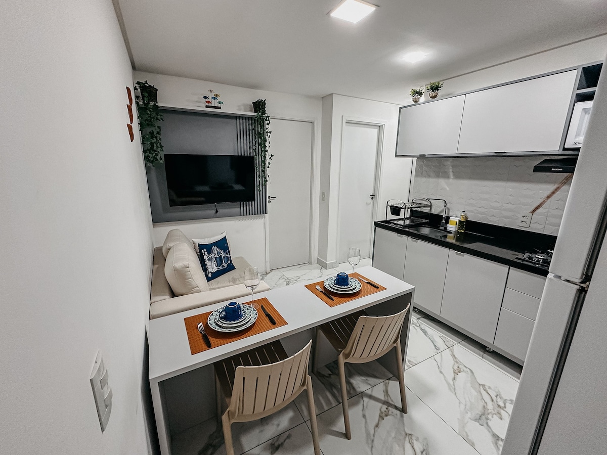 Divirta-se com toda a família neste flat térreo completíssimo: com 2 quartos, dois banheiros, sendo um suite, uma sala que vira quarto de casal, todos com TV à cabo ,smart TV e ar condicionado. Wi-Fi, cozinha completa com todos os eletrodomésticos tradicionais, inclusive airfryer e gela água . Ferro elétrico e secador de cabelo. Além de uma varanda com duas confortáveis redes para seu relax